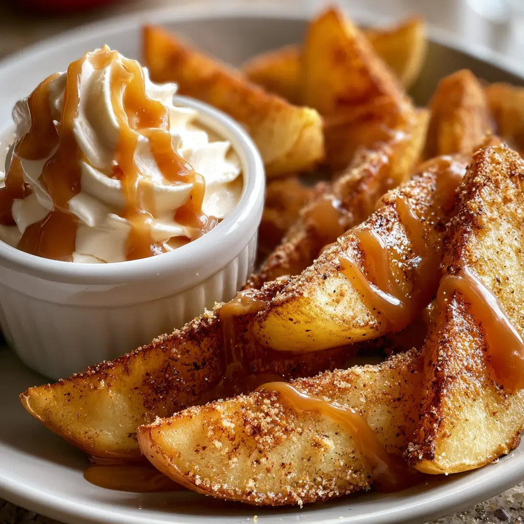 Air Fried Apple Wedges: Indulgent Treat with Caramel Whipped Cream