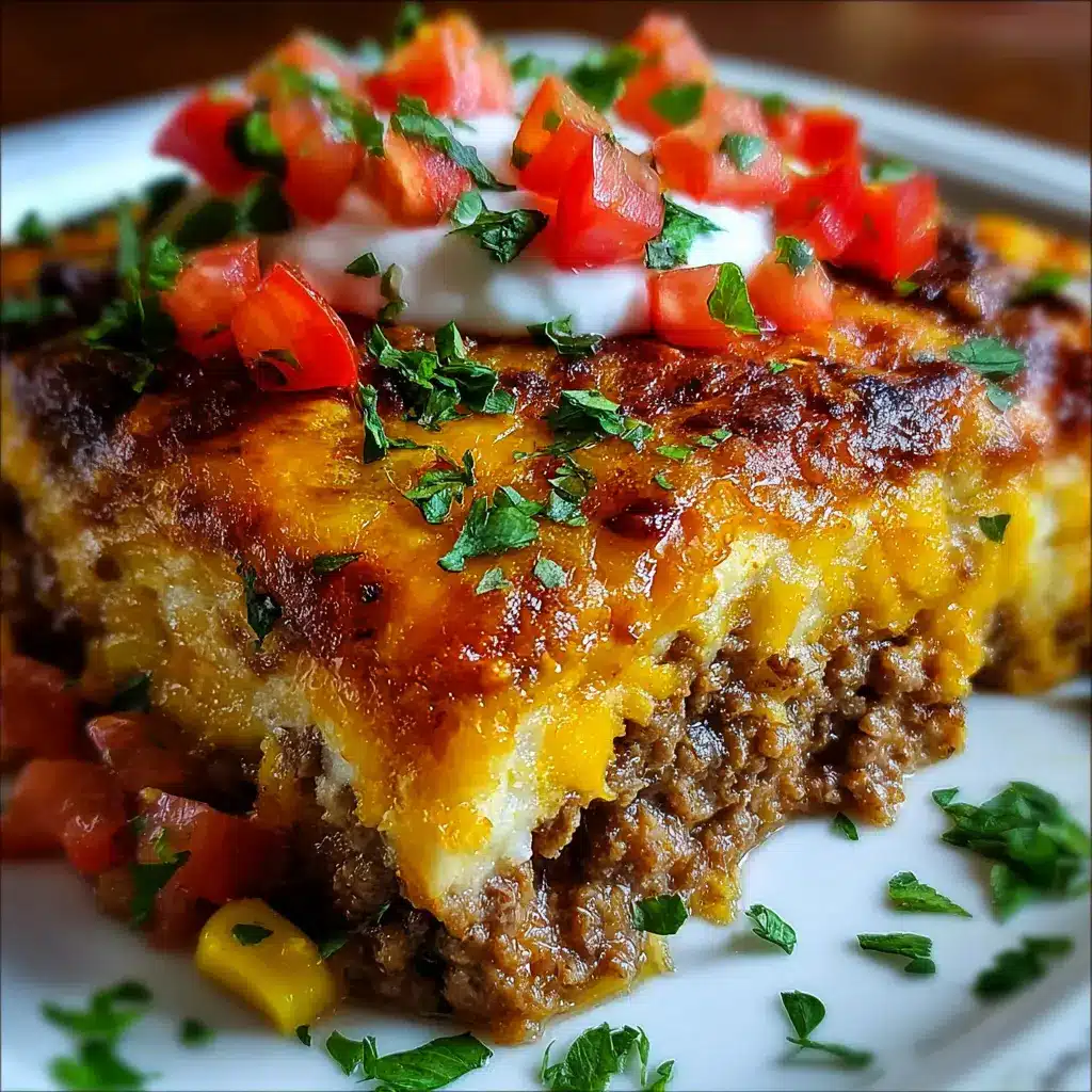 With your flavorful beef and vegetable mixture ready, it’s time to assemble the casserole. Begin by placing a layer of flour tortillas at the bottom of your prepared baking dish. You can tear them into pieces to ensure an even layer. Next, pour half of the beef mixture over the tortillas, spreading it out evenly. Follow this with a generous sprinkle of your favorite cheese — maybe cheddar or Monterey Jack — for that gooey goodness. Repeat with another layer of tortillas, the remaining beef mixture, and top it off with more cheese.