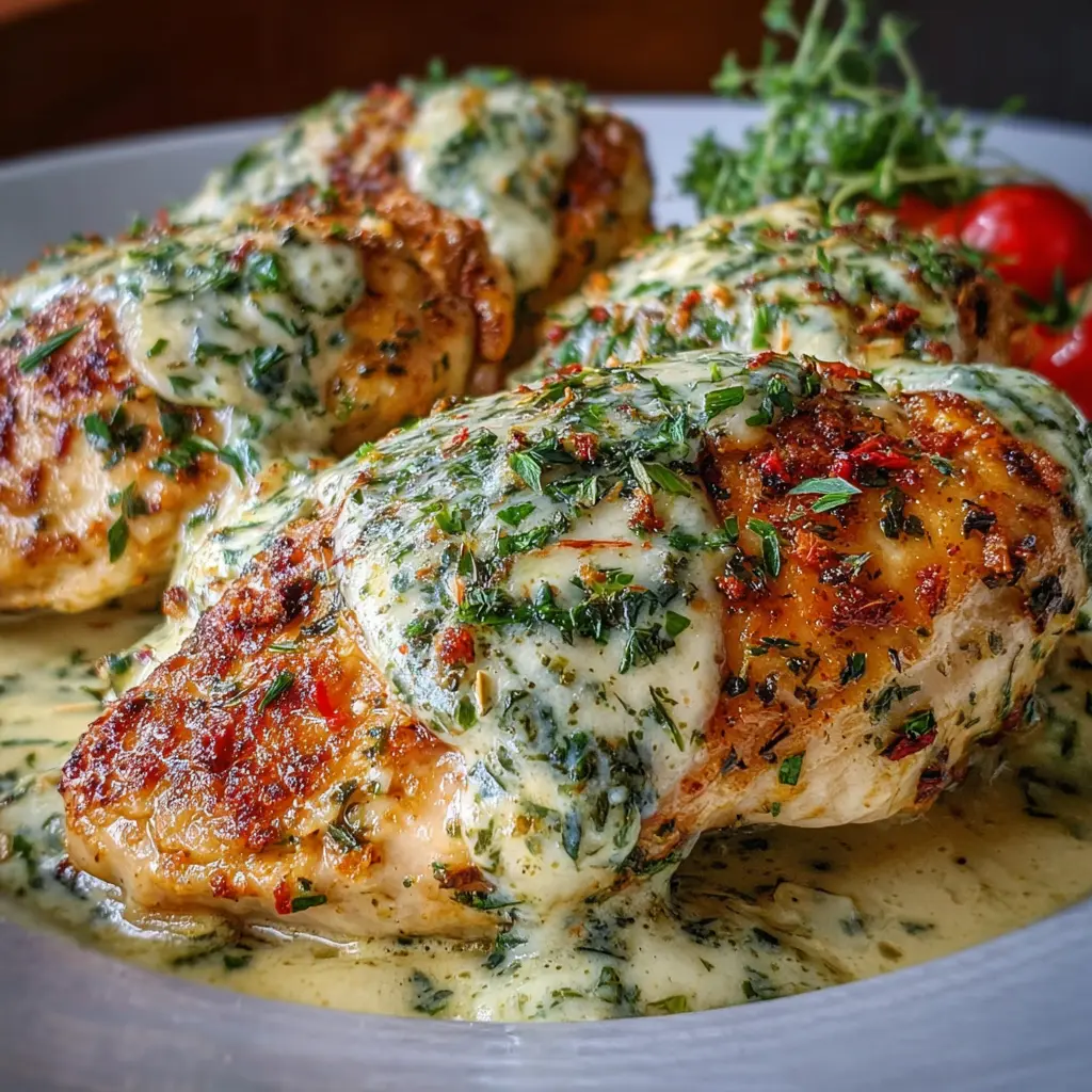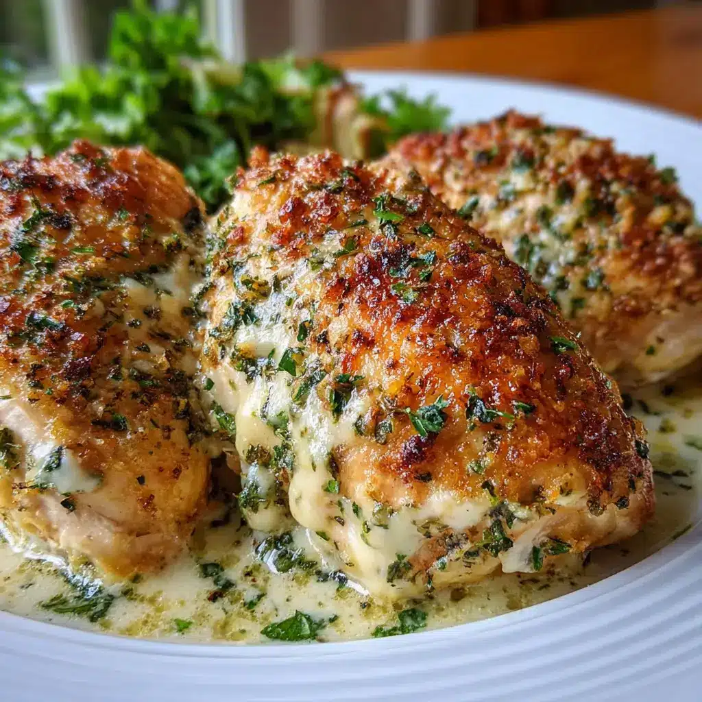Once your Baked Caesar Chicken is out of the oven and has that lovely golden hue, let it rest for about 5 minutes. This allows the juices to redistribute, keeping each bite juicy. Right before serving, sprinkle chopped fresh parsley on top for added freshness and a pop of color.