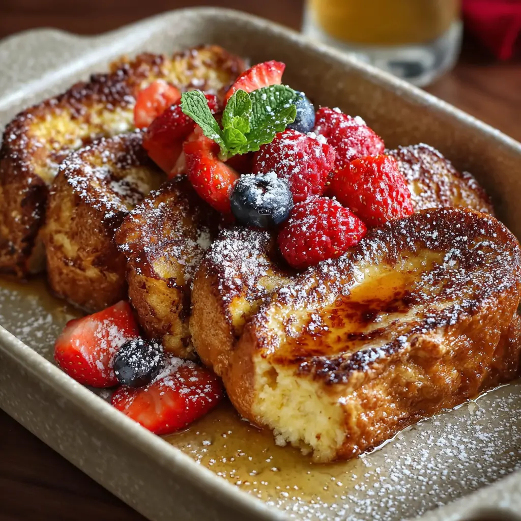 Want to add a refreshing twist? Baked French toast topped with fresh fruit is a game changer. Think vibrant strawberries, blueberries, or even roasted peaches.