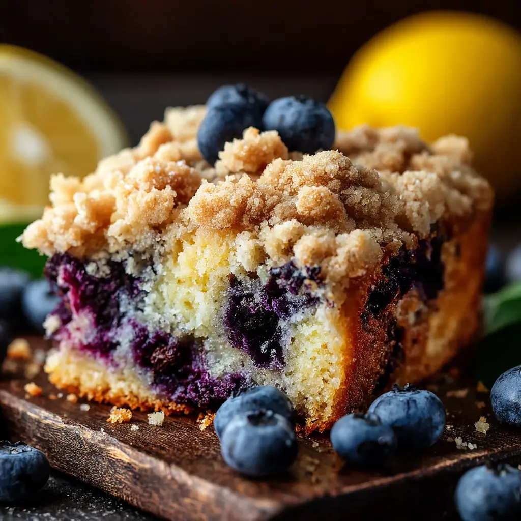Discover the delightful combination of blueberry and lemon in this moist and crumbly cake, perfect for any occasion.