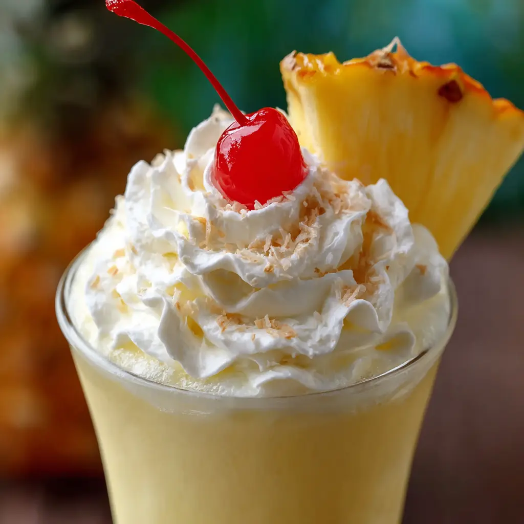 Indulge in the tropical flavors of a Boozy Dole Whip, a perfect blend of pineapple, coconut, and rum that brings a taste of paradise to your home.