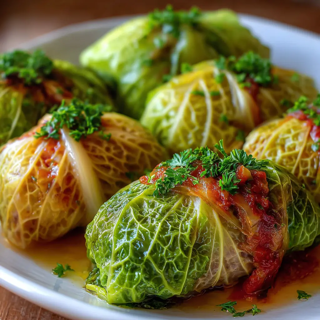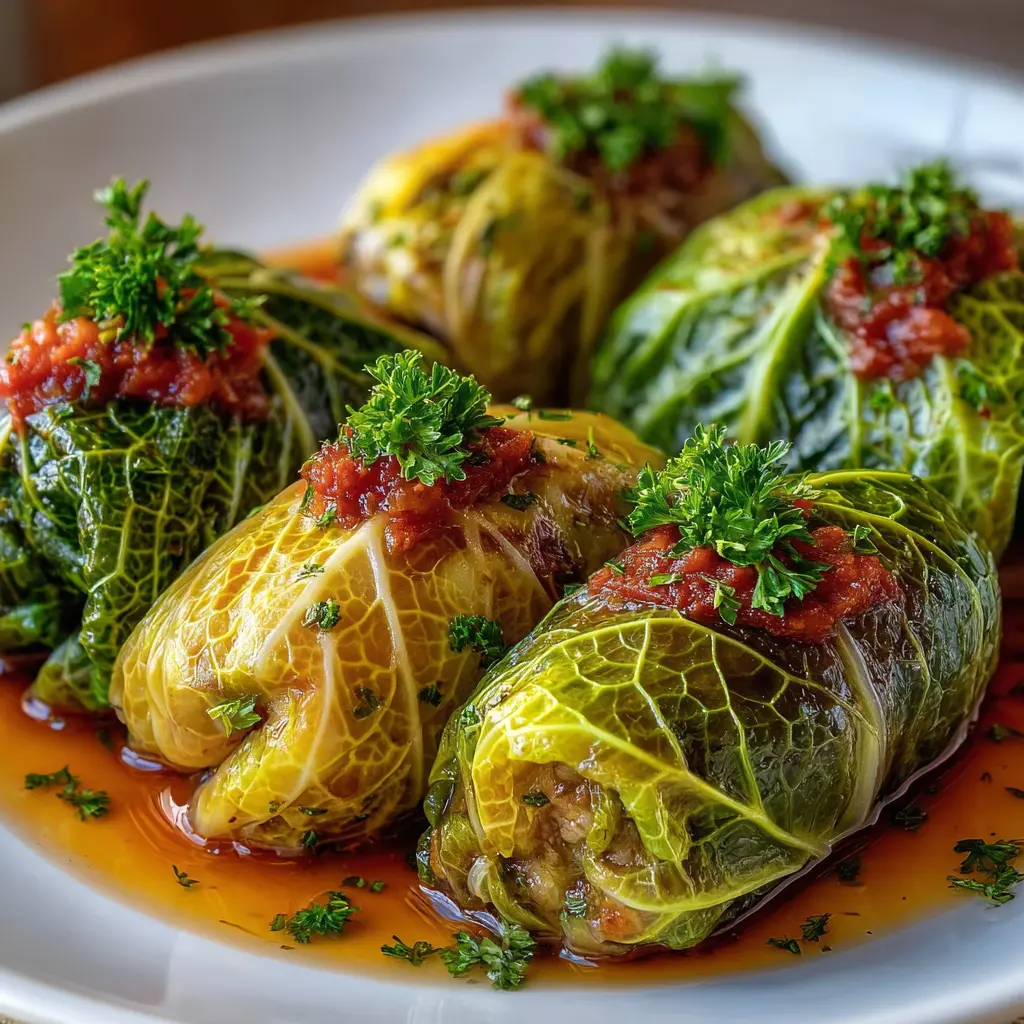 Cabbage Rolls are a delicious dish made with tender leaves stuffed with a savory mixture of turkey bacon and beef, offering a comforting and hearty meal.