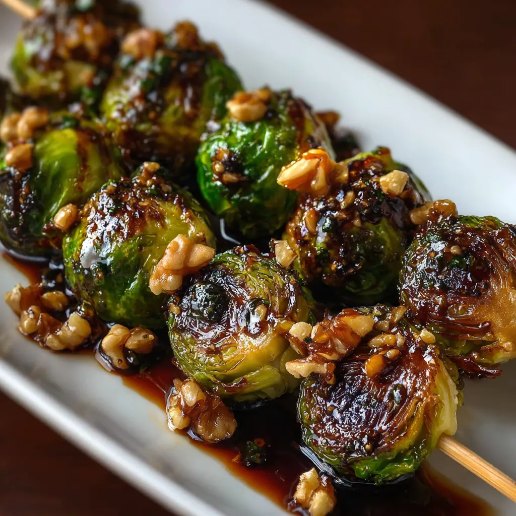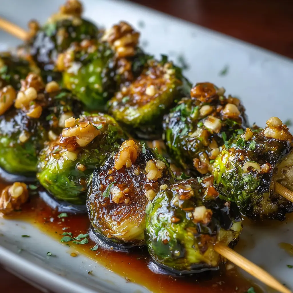 Caramelized Brussels Sprouts Skewers with Walnut Honey: A Sweet Delight