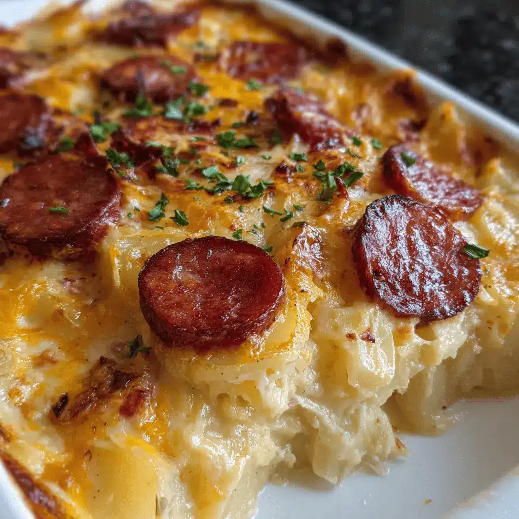 In conclusion, the cheese potato and smoked sausage casserole is not just a meal; it’s a heartwarming experience that brings comfort to any dining table. Perfect for gatherings or cozy nights in, this casserole combines creamy potatoes with the savory flavors of smoked sausage and melted cheese, creating a dish that pleases even the pickiest eaters.
