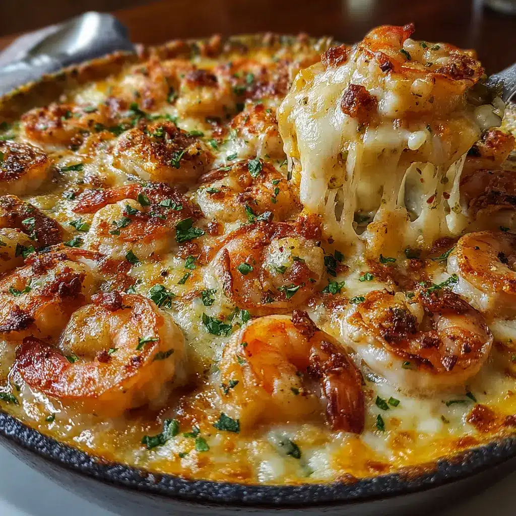 A delightful and comforting dish featuring shrimp smothered in cheese, perfect for family dinners or special occasions.