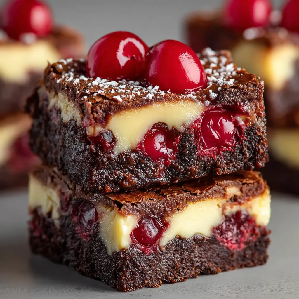 These Cherry Cheesecake Brownies combine rich chocolate brownie layers with a creamy cheesecake layer and tart cherries, making them the perfect indulgent dessert.