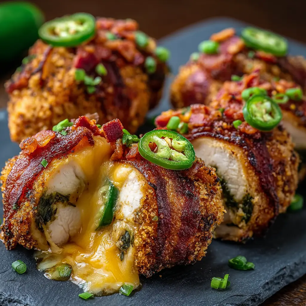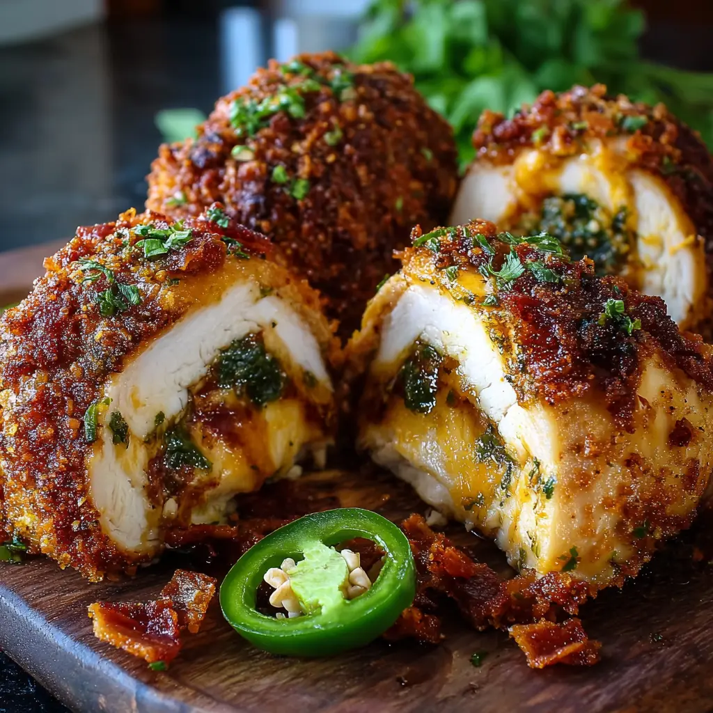Indulge in these chicken jalapeño bombs, bursting with flavor and filled with turkey bacon. Perfect for a lovely appetizer or tasty snack!