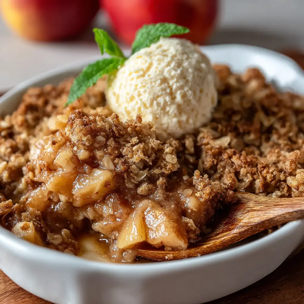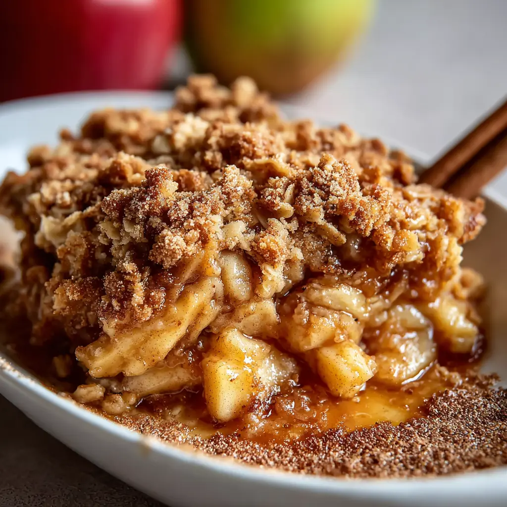 Cinnamon Apple Crisp is a delightful dessert featuring warm, spiced apples beneath a crumbly topping.