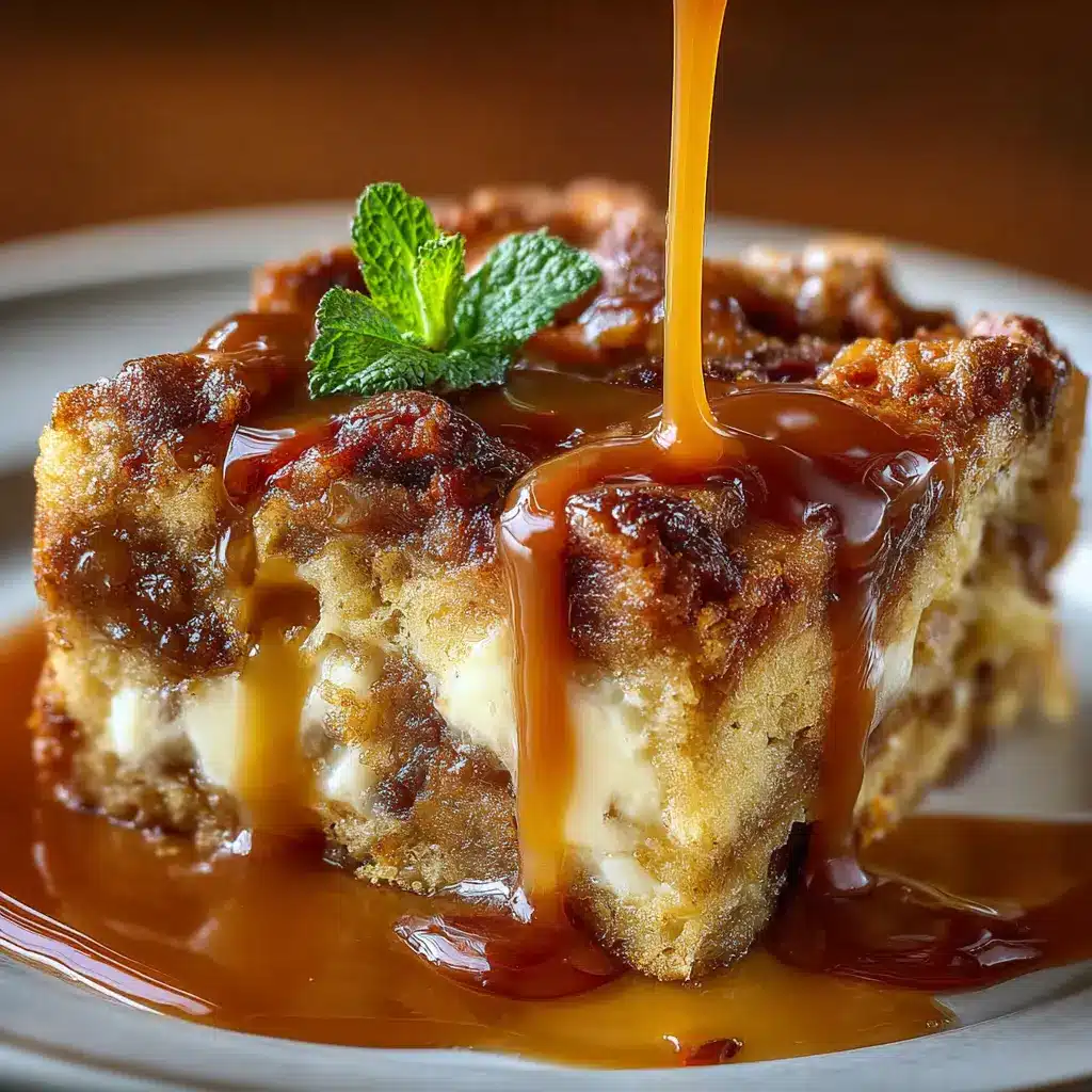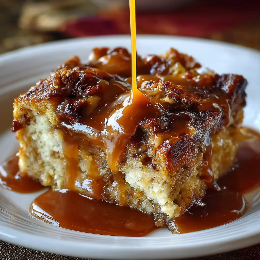 Experience the delightful blend of rich flavors in this classic bread pudding recipe, drizzled with homemade caramel sauce.