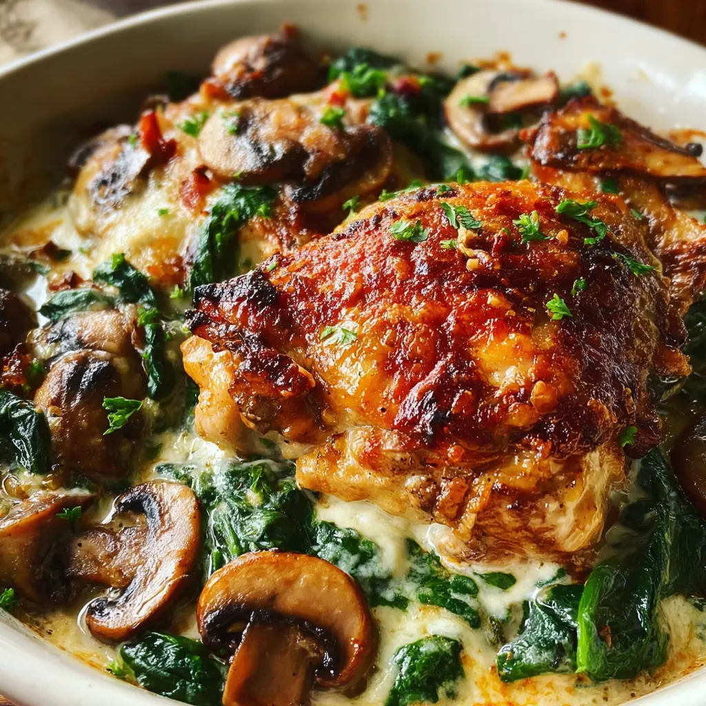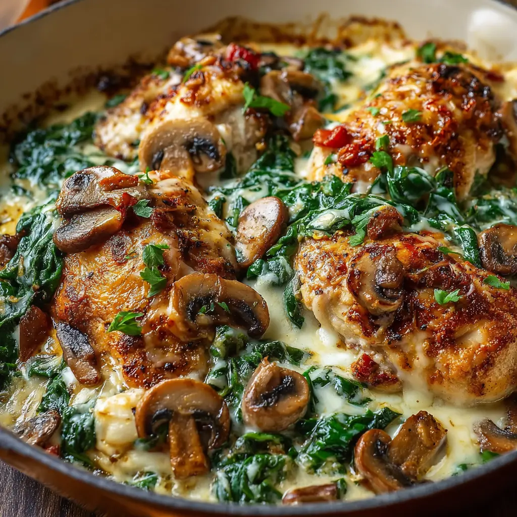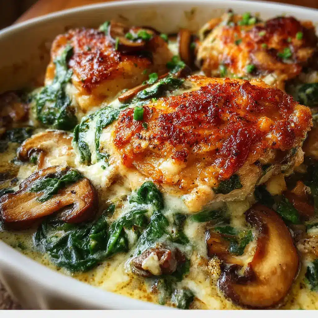A delicious blend of chicken, spinach, and mushrooms baked to perfection.