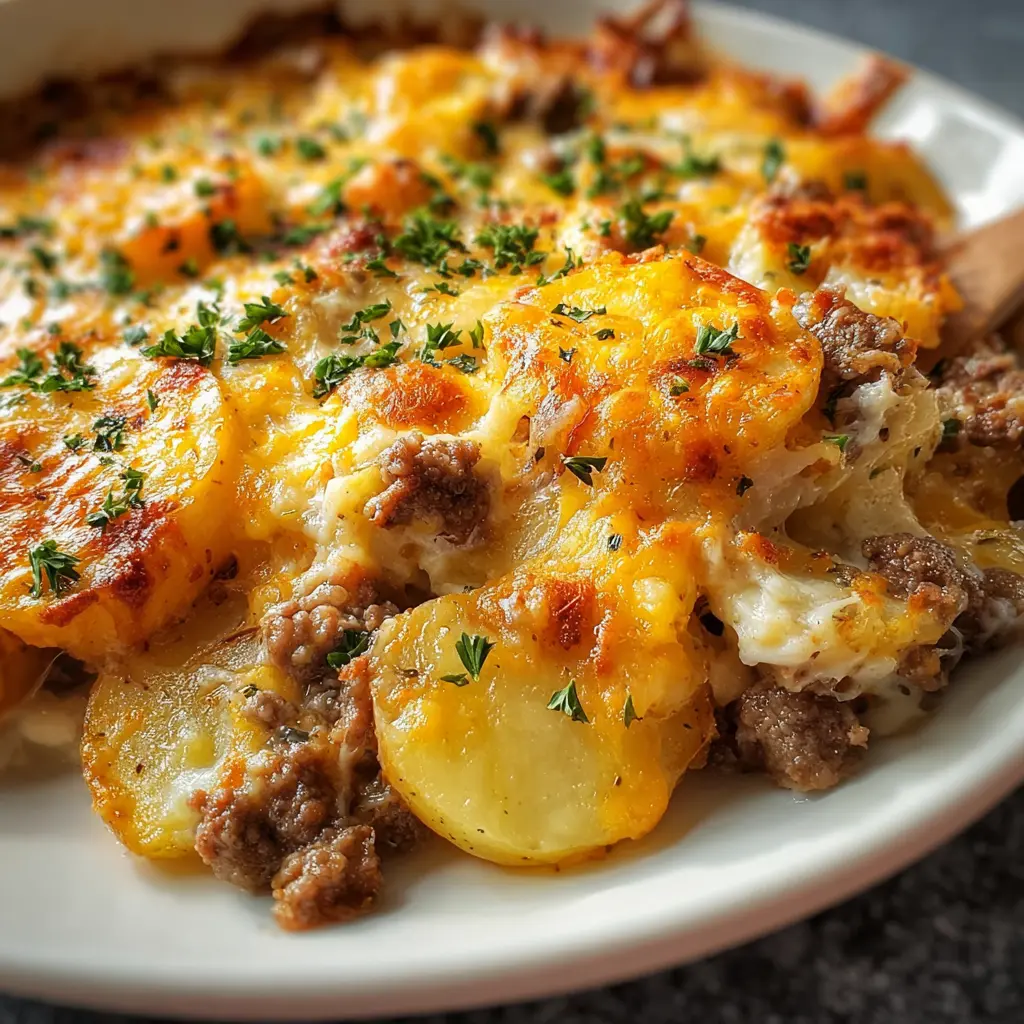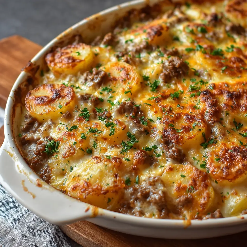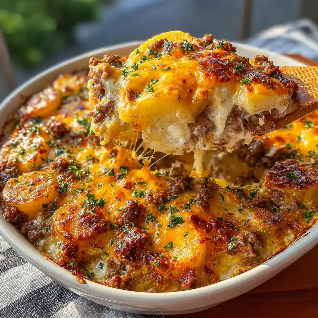 Creamy Beef & Potato Cheesy Bake is a hearty dish perfect for families, combining savory beef and creamy potatoes.