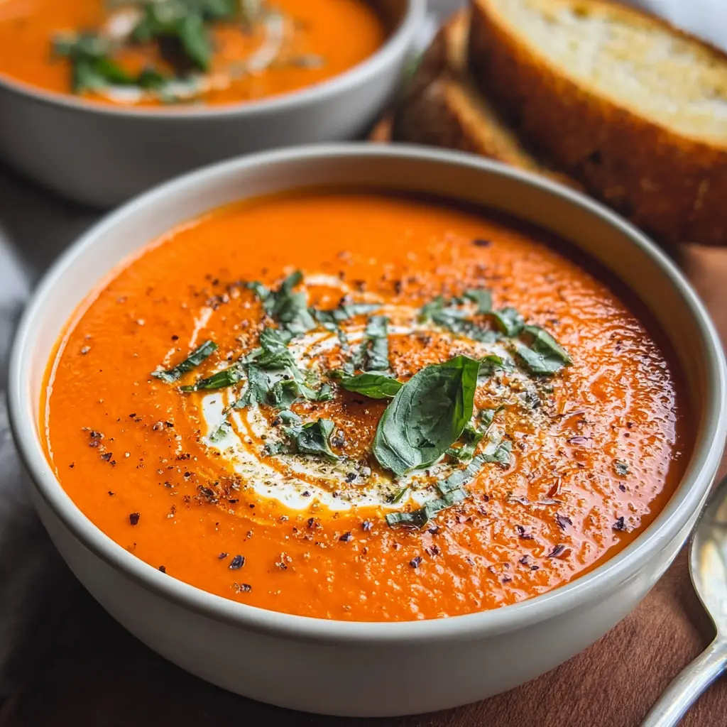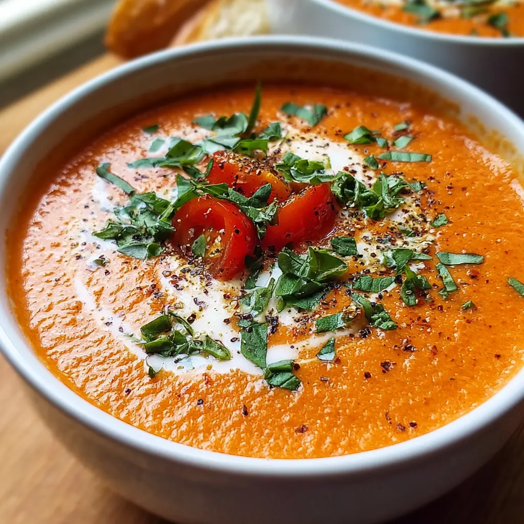 Serve hot, garnished with fresh basil or a swirl of cream for that fancy touch. If you’re feeling adventurous, think about adding croutons or a sprinkle of cheese on top. Savor every spoonful of your creamy tomato soup!