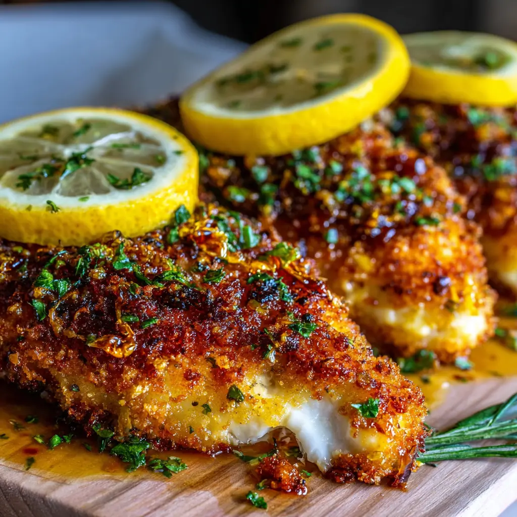 Crispy Baked Hot Honey Lemon Feta Chicken Cutlets: Easy Herb Crust Delight