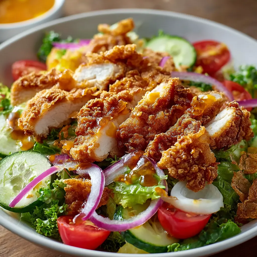 A refreshing and delightful salad that combines crispy chicken with a variety of fresh vegetables, perfect for any meal.