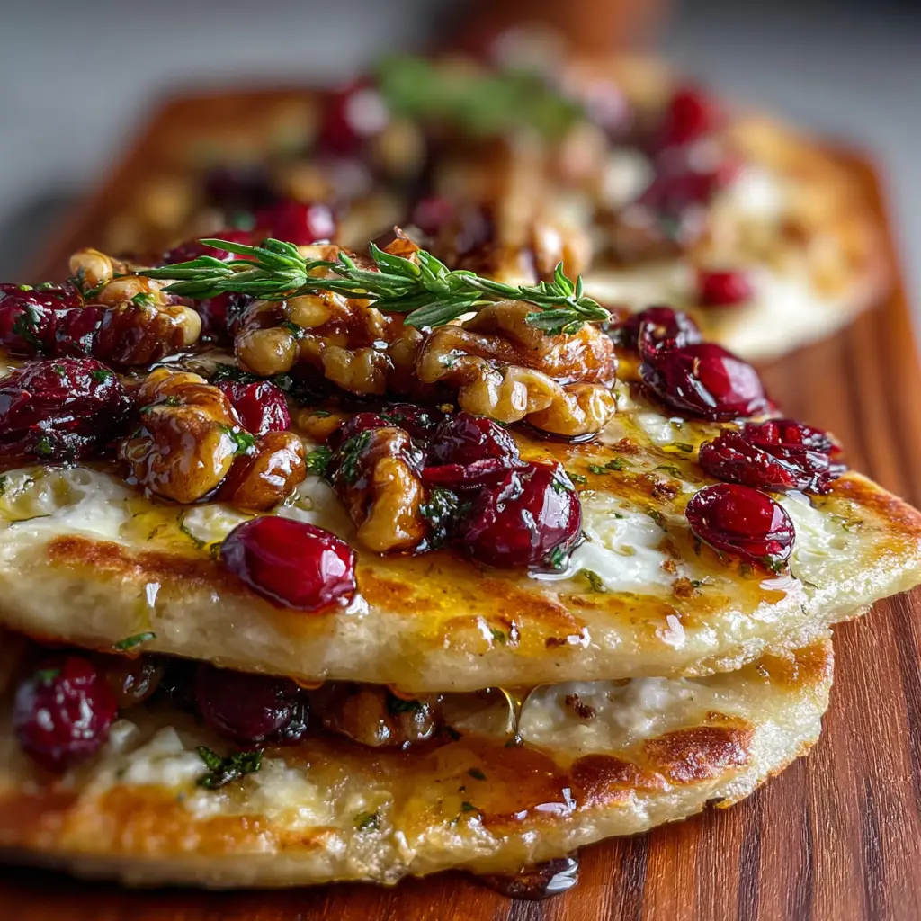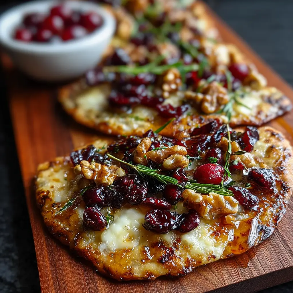 Crispy Flatbread with Brie, Cranberries & Toasted Walnuts Delight