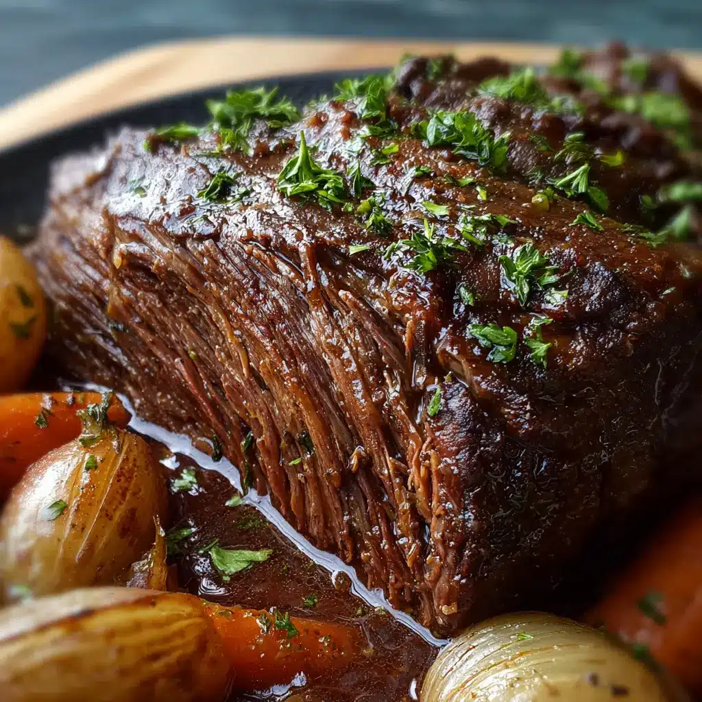 Finally, when your roast is tender and falling apart, it’s time to serve! Slice the beef, drizzle the heavenly sauce over the top, and garnish with freshly chopped herbs for that restaurant-style finish. Serve it alongside your perfectly cooked vegetables, and watch your guests go back for seconds!