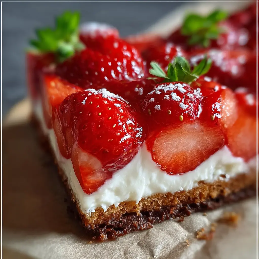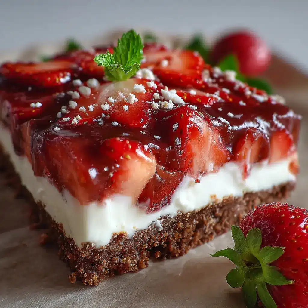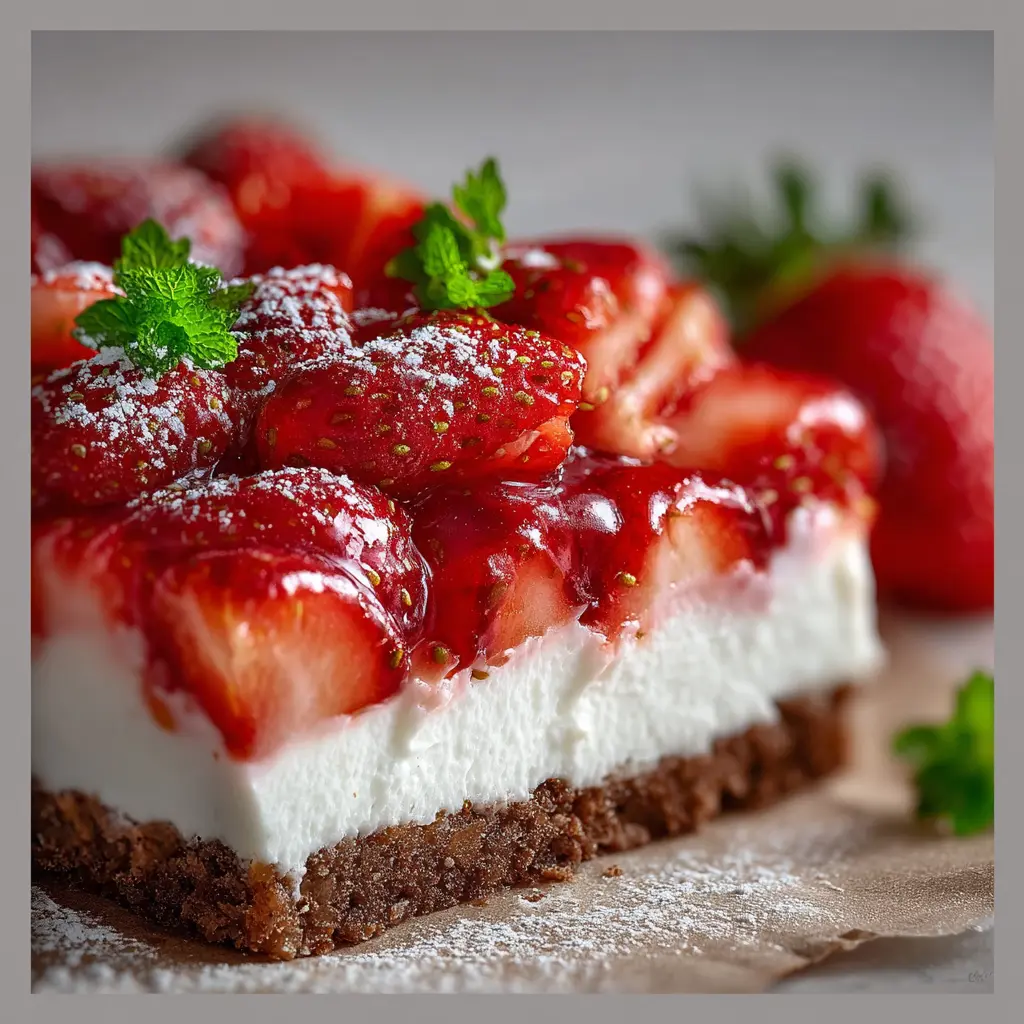 Der ultimative Erdbeer-Traum: Indulgent Joghurt-Schnittchen auf Schokoboden