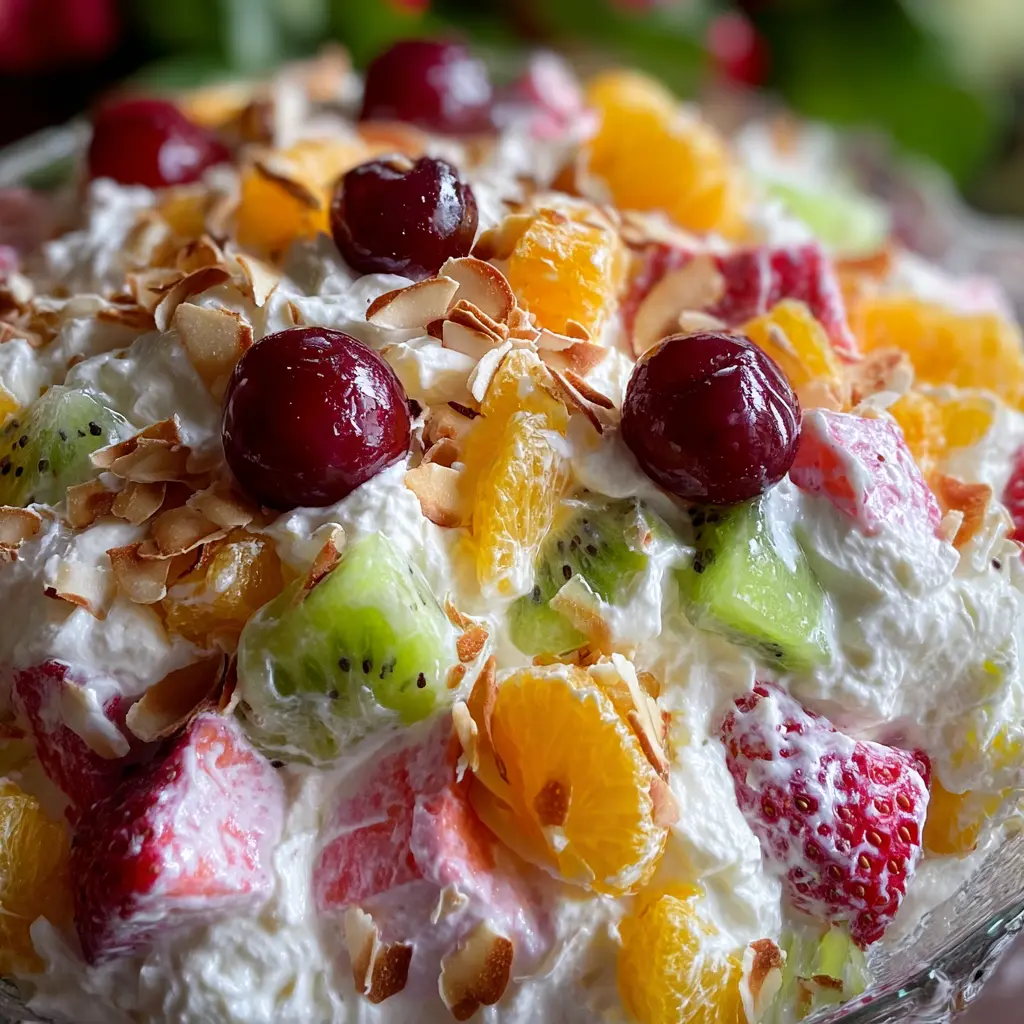 Easter Fruit Fluff Salad is a delightful mix of fruits and cream that brings a refreshing sweetness to your festive table.