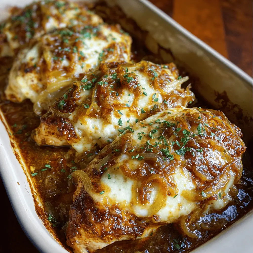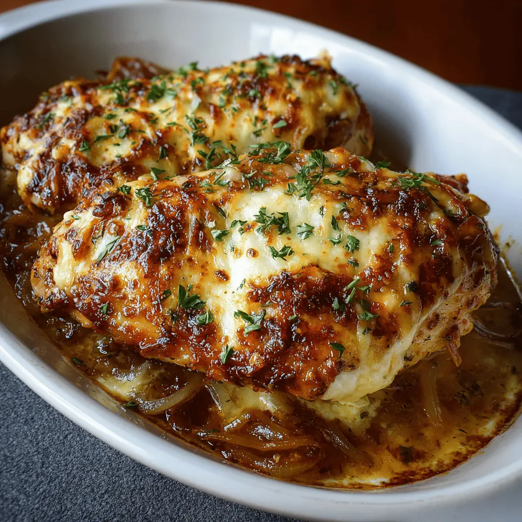 First off, if you’re a fan of French onion soup, you’ll fall head over heels for this dish. Imagine tender chicken baked to perfection and topped with caramelized onions, creamy cheese, and a hint of rich broth—all comfort food at its finest! The layers of flavor create an irresistible experience that’s both hearty and soothing.