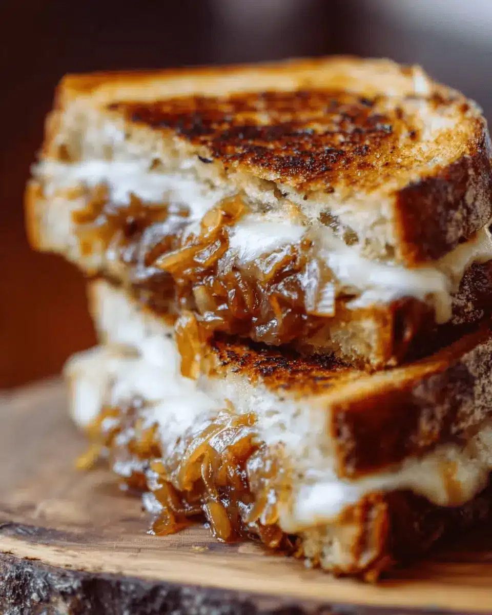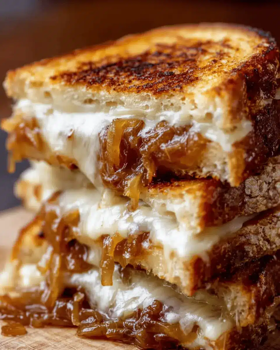 Once your onions are perfectly caramelized, it’s time to build your French Onion Grilled Cheese. Here’s how you can layer this cheesy delight: