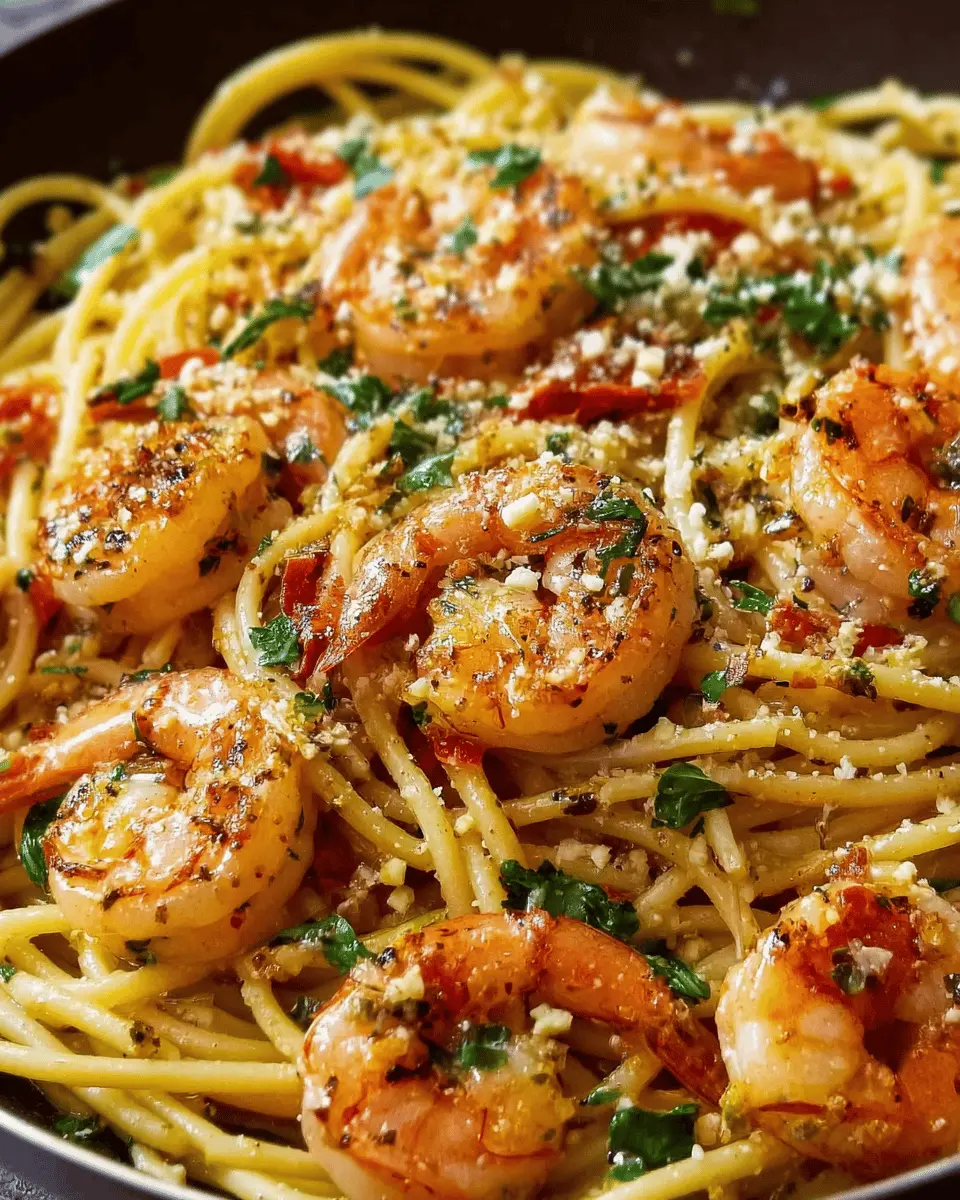 To elevate your garlic shrimp pasta delight, it’s time for the finishing touches.