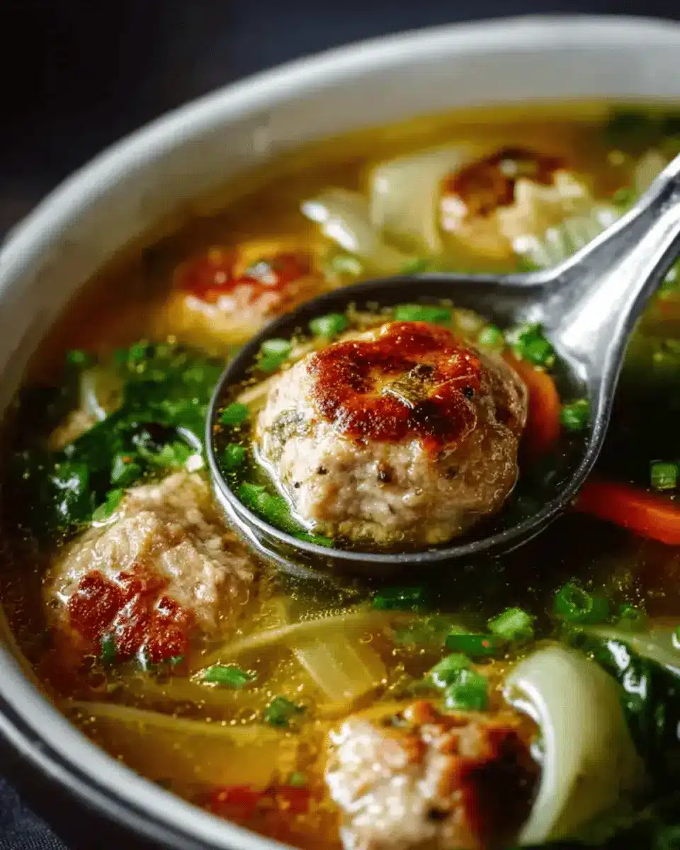 In summary, ginger chicken meatball soup is not just a meal; it’s a hug in a bowl. The combination of tender chicken meatballs, aromatic ginger, and refreshing vegetables makes it a delightful choice for any day. It’s perfect for warming your soul after a long workweek or for impressing guests at a cozy dinner party.