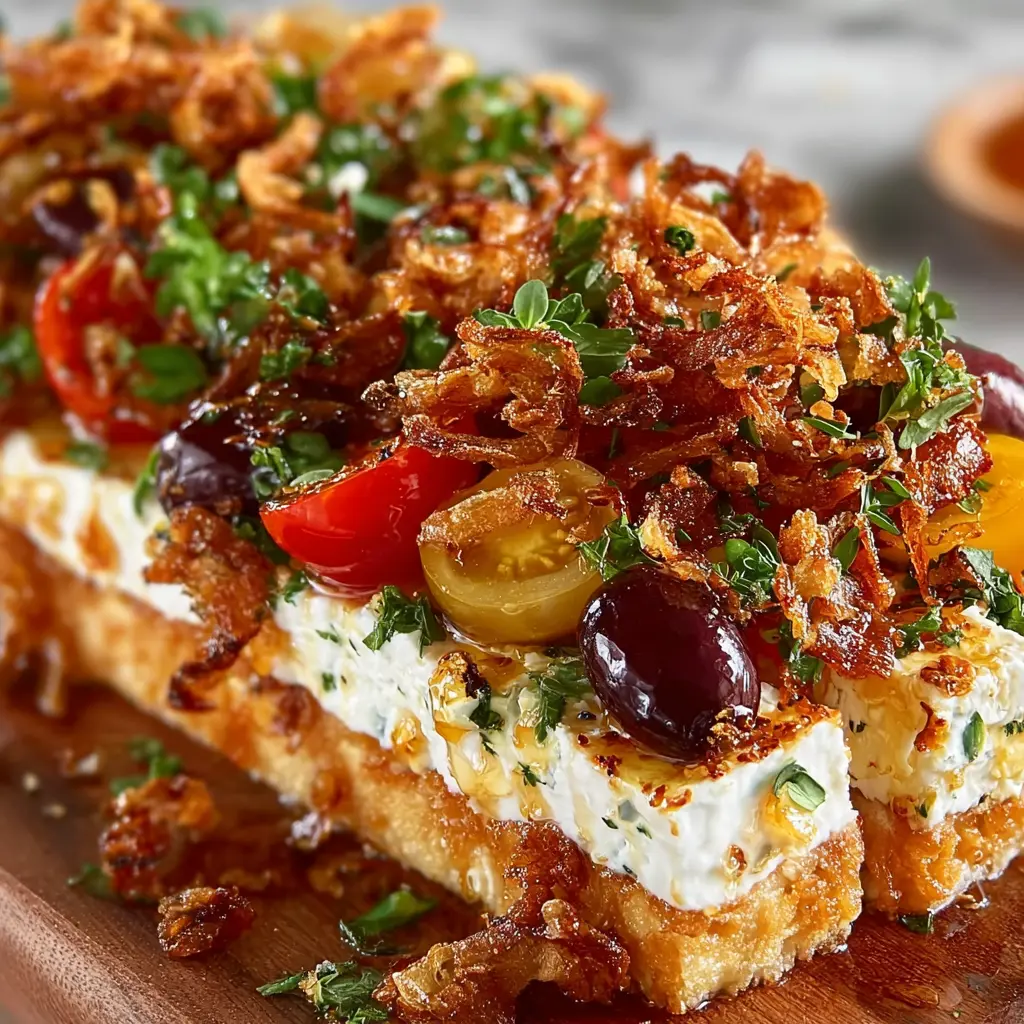 - Add accompaniments: Arrange your crispy fried onions, hot honey, olives, roasted peppers, cherry tomatoes, and any additional fruits or nuts you like. Think about color and variety — a purple hue from Kalamata olives, fresh crunchy greens, and maybe a tender slice of pita bread to scoop up the goodness!