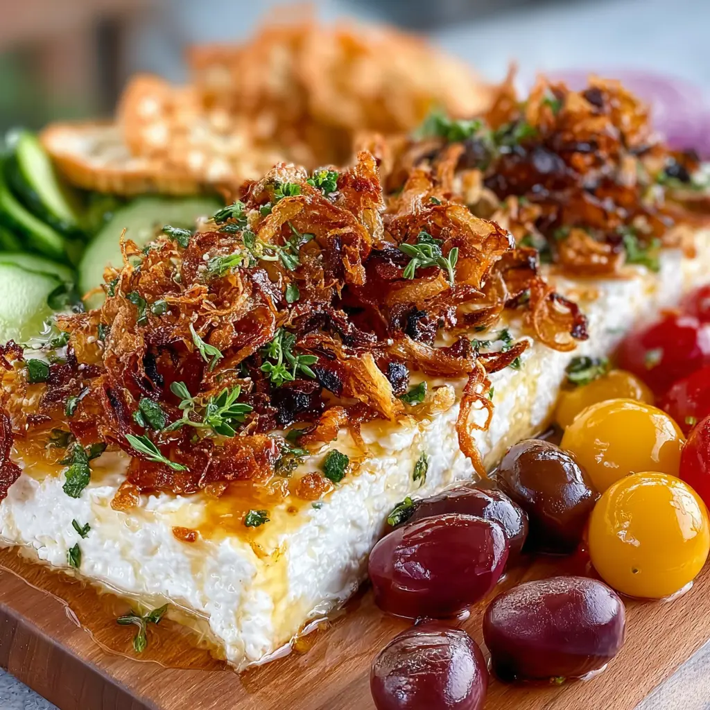 Greek Feta Board with Hot Honey & Crispy Fried Onions: Easy Indulgence