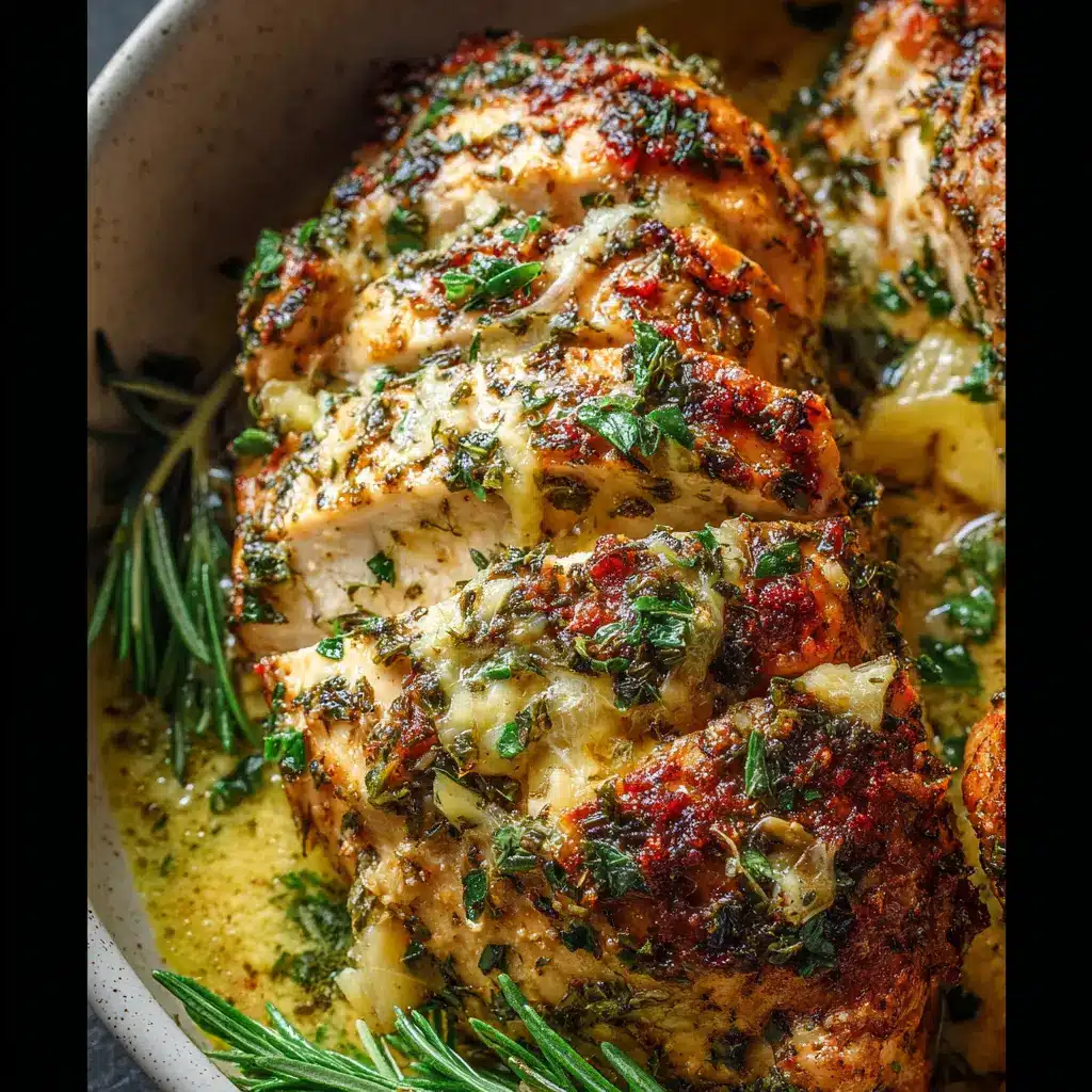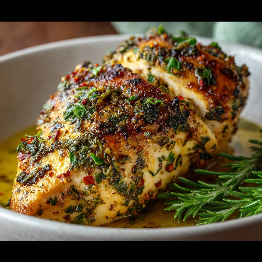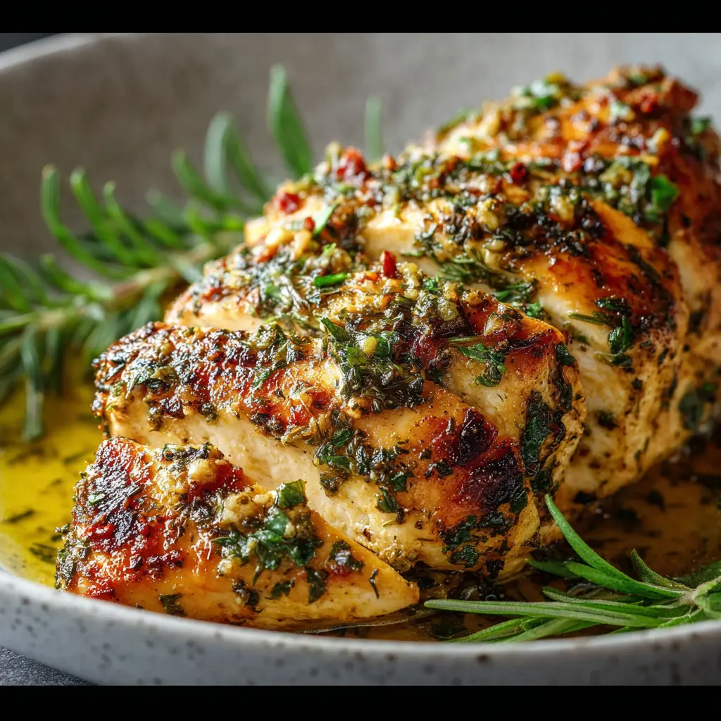 Deliciously tender baked chicken breast infused with garlic and herbs for an unforgettable meal.