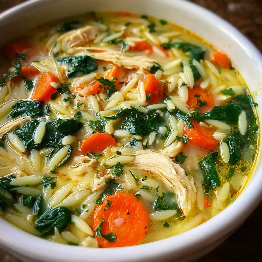 A bright and refreshing soup perfect for spring, featuring tender chicken, orzo pasta, and vibrant vegetables.