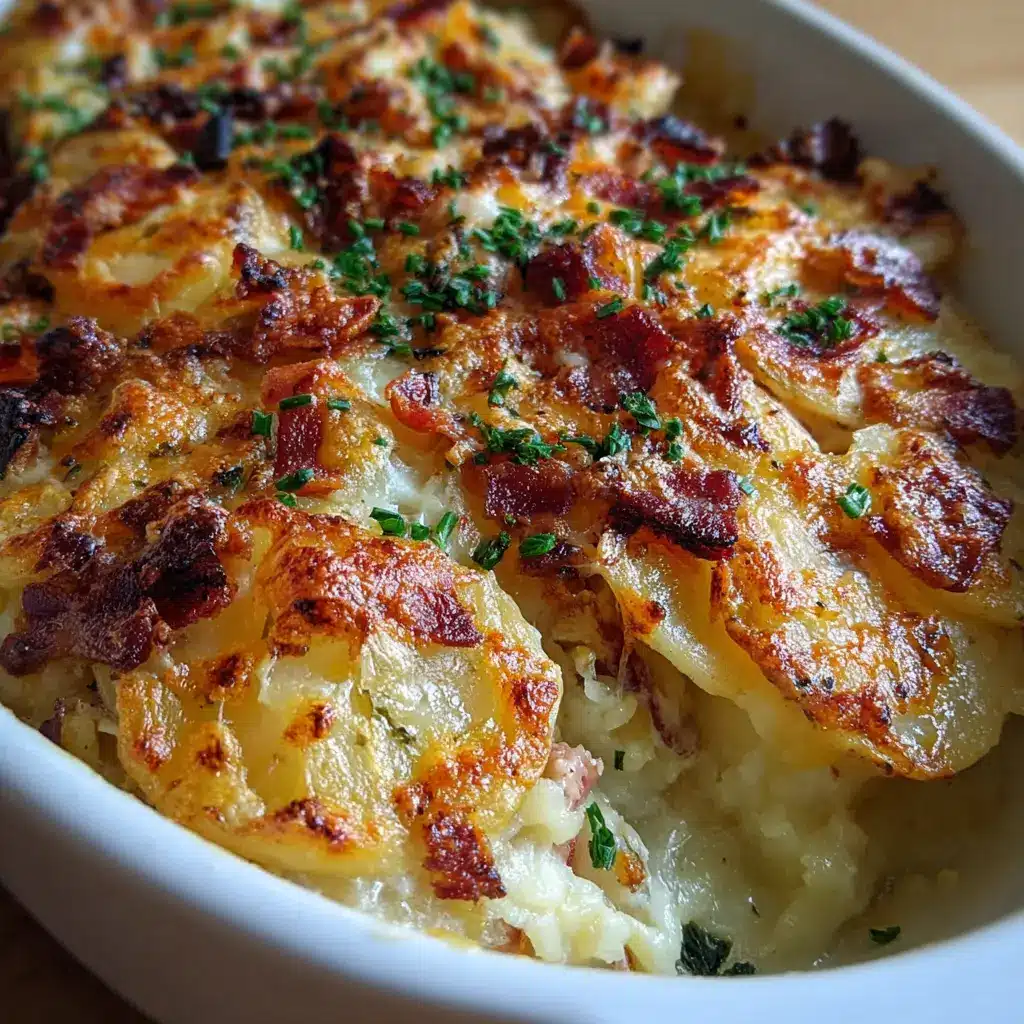 Indulge in these creamy and savory Loaded Scalloped Potatoes, enhanced with turkey bacon and chicken ham for a delightful twist.