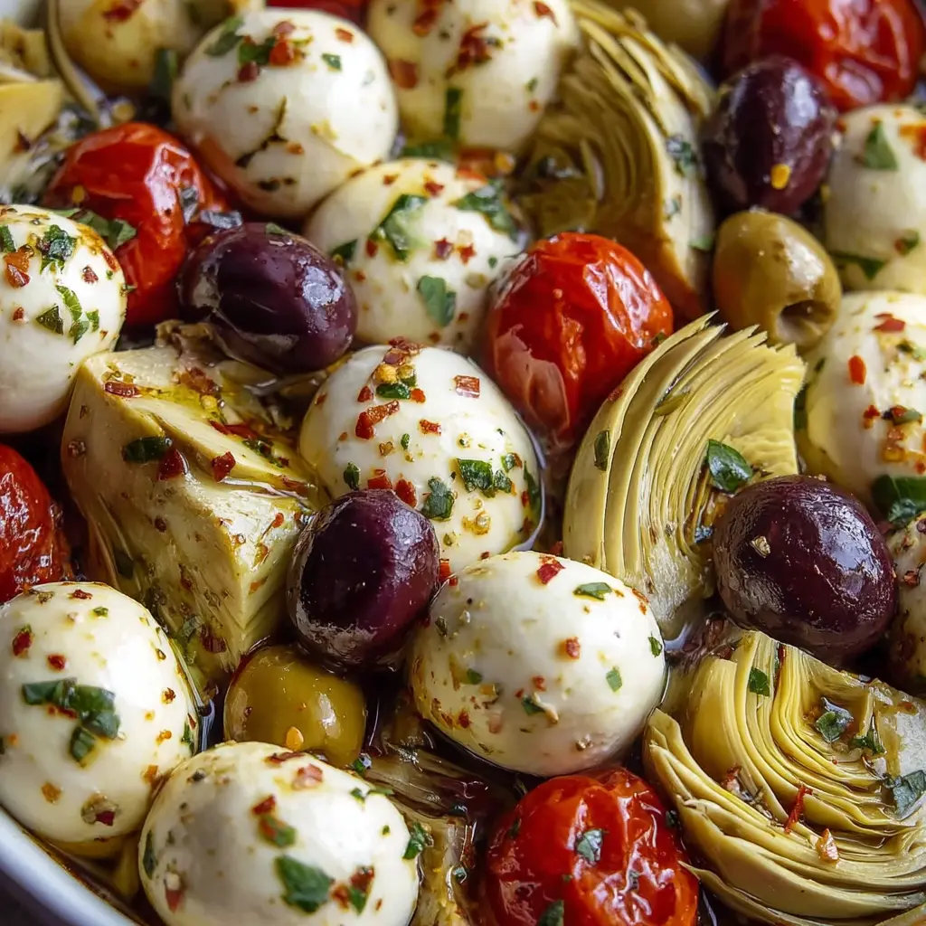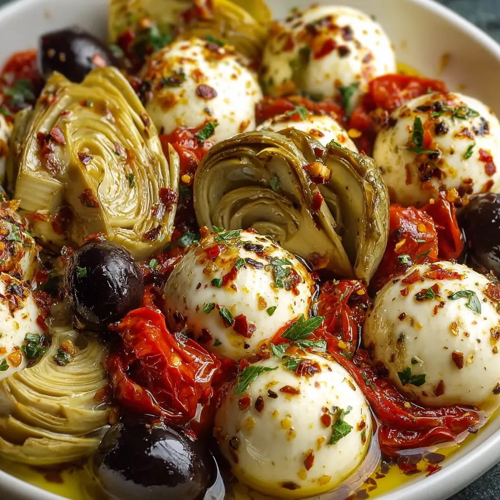 Marinated Mozzarella Balls with Artichokes and Olives: A Fresh Twist