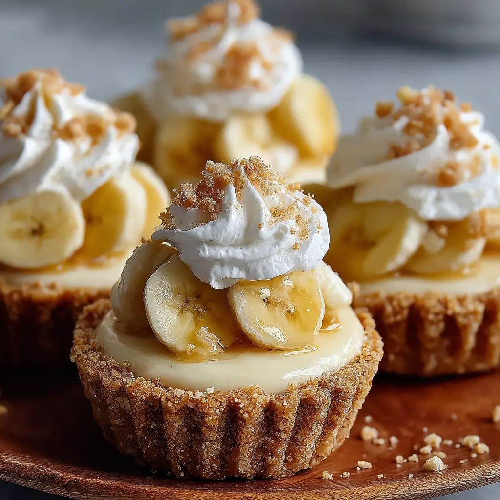 Mini Banana Pudding Pies are the perfect bite-sized dessert, combining creamy banana pudding with a crunchy crust for a delectable treat.