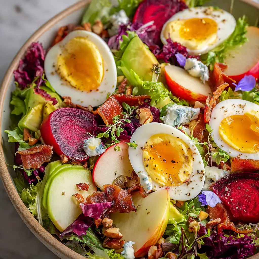 This delightful Easter salad combines turkey bacon and chicken ham, creating a festive and tasty dish perfect for your holiday table.