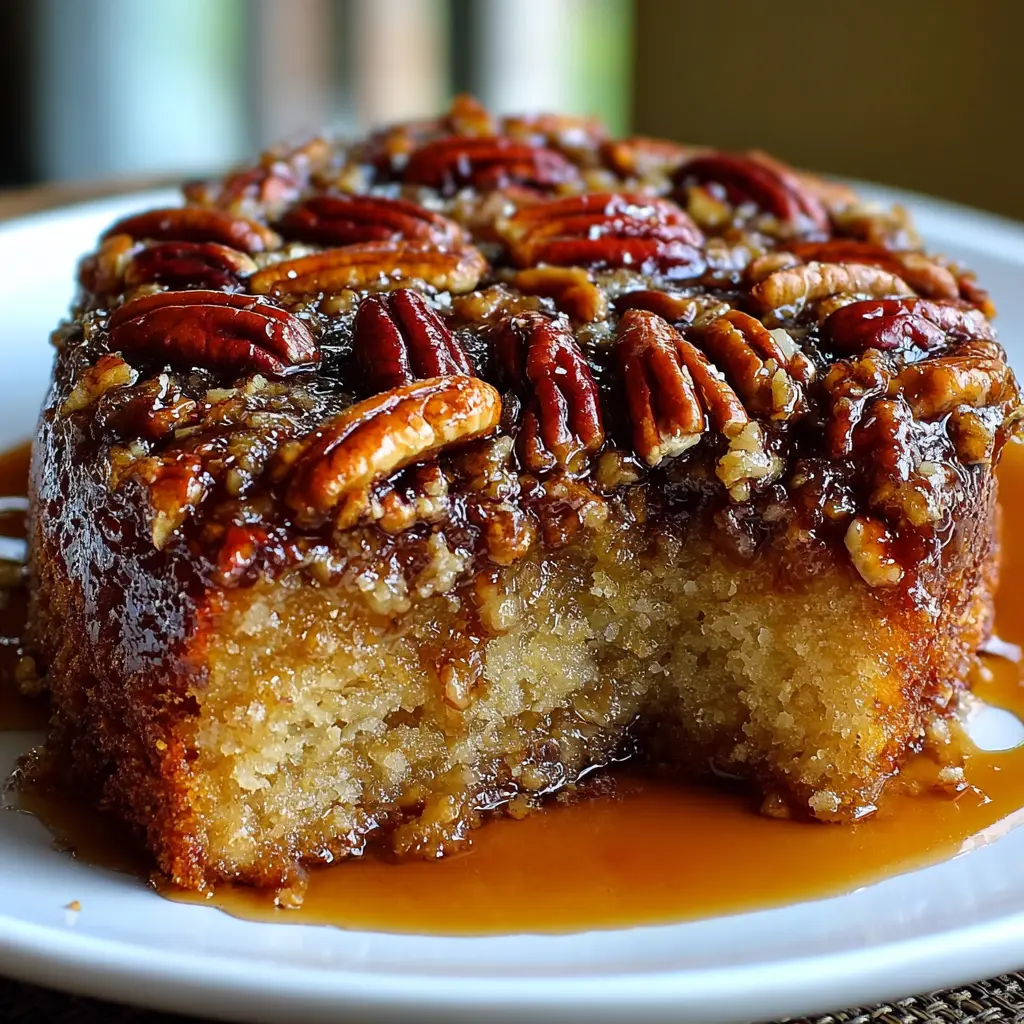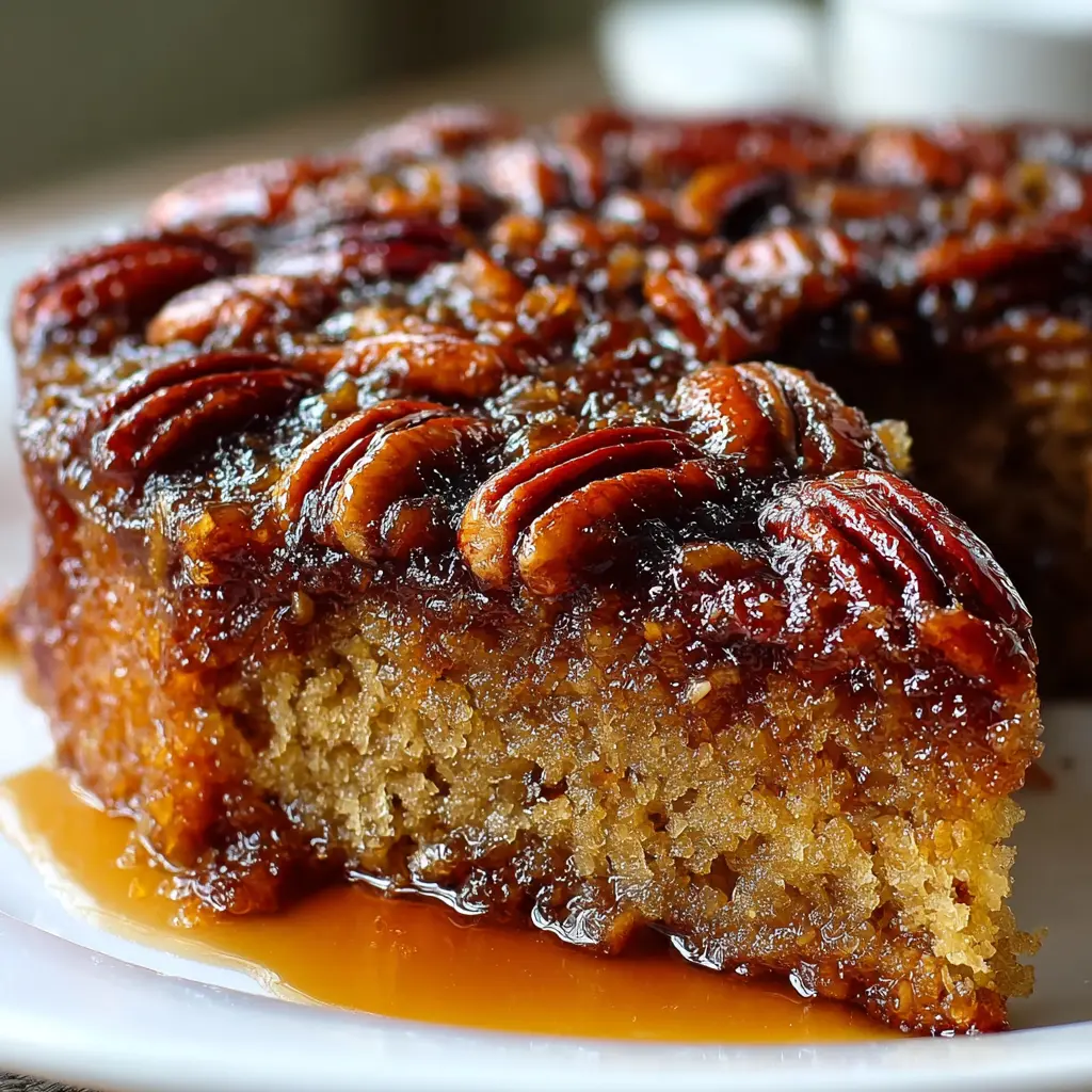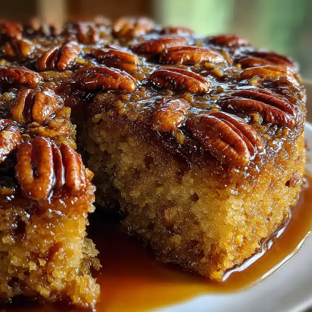 Textural Contrast: The crunchy, caramelized pecans complement the soft, moist cake, creating a delightful contrast that keeps every bite interesting. This mix of textures elevates an ordinary dessert into something truly memorable.