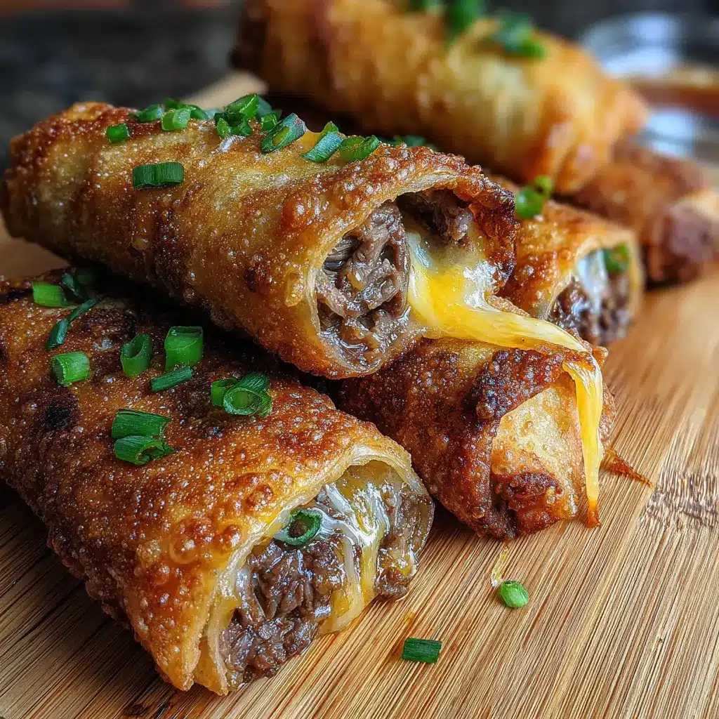 Enjoy a delicious twist on the classic cheesesteak with these savory Philly Cheesesteak Egg Rolls. Perfect for snacking or entertaining!