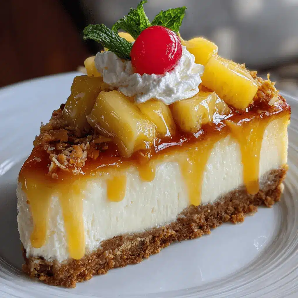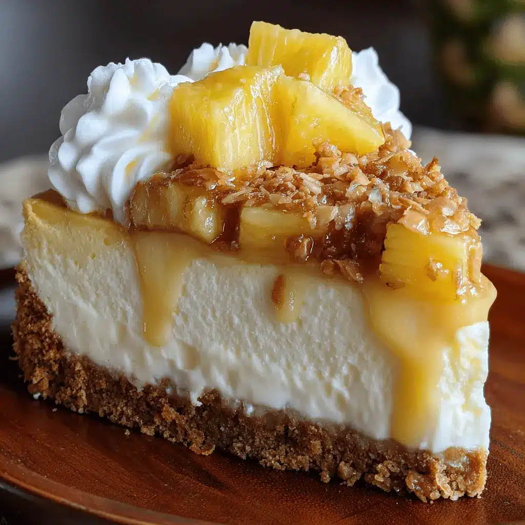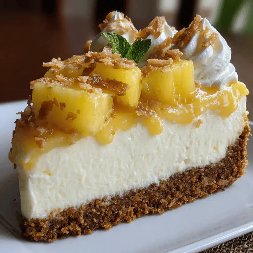 A deliciously rich and creamy cheesecake infused with tropical pineapple flavors, perfect for dessert lovers.