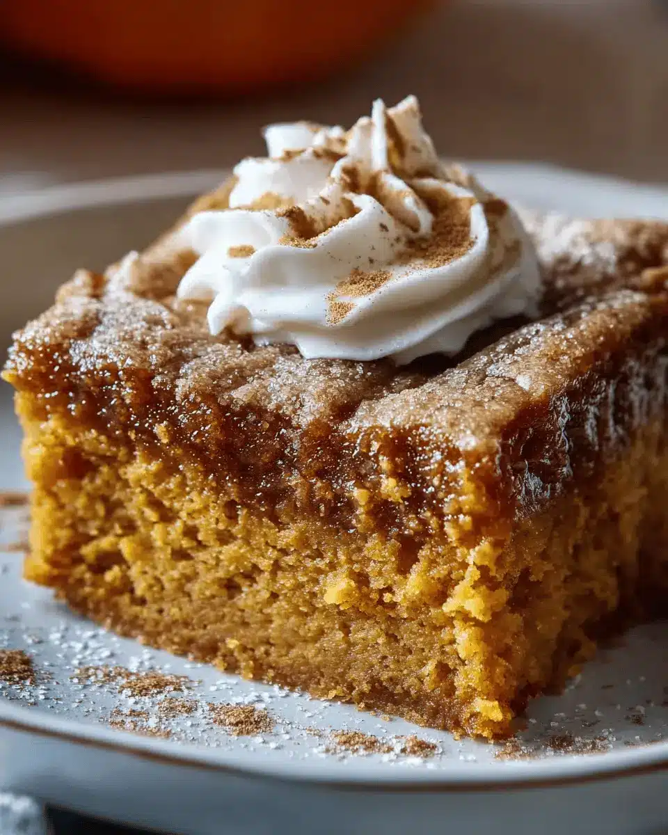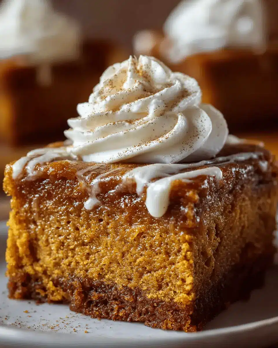A deliciously rich and gooey pumpkin spice cake that captures the essence of fall.