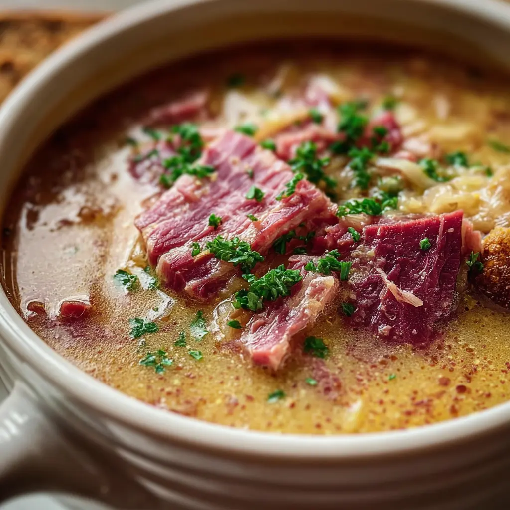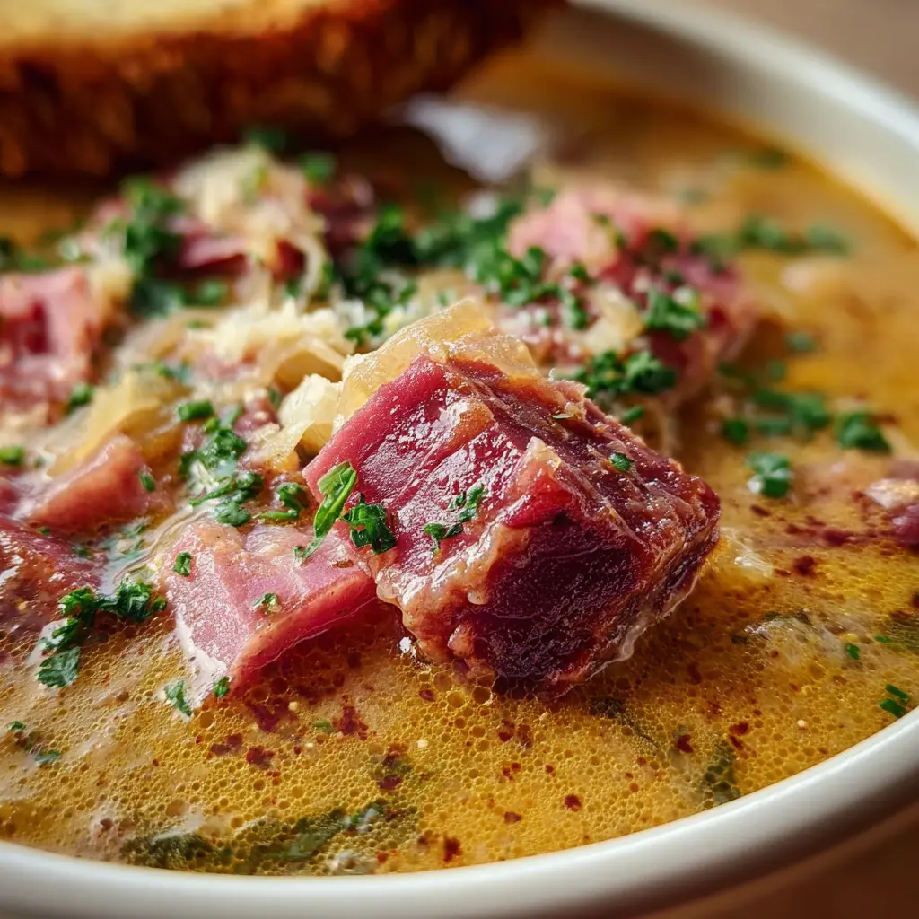 Reuben Soup: A Hearty Twist with Turkey Bacon and Chicken Ham