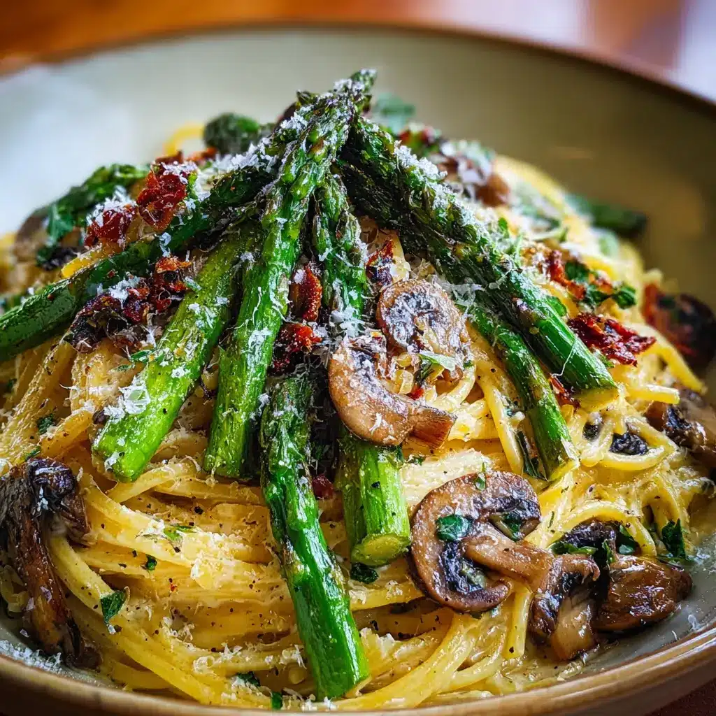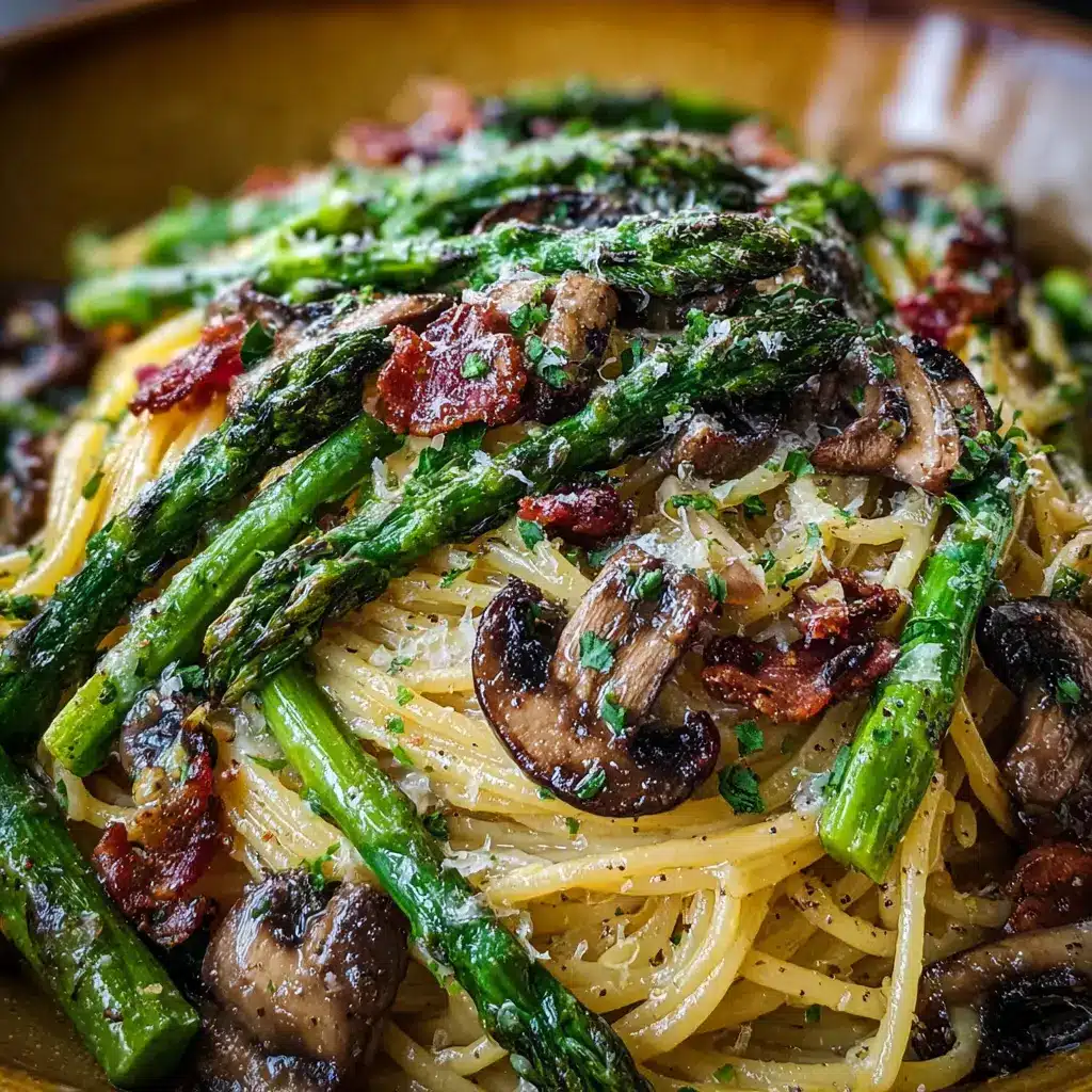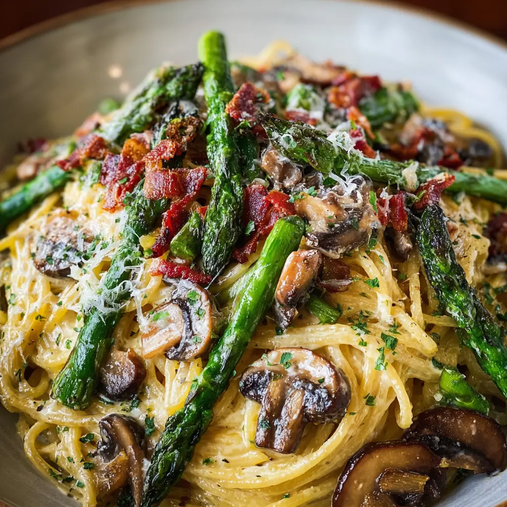 Roasted Asparagus and Mushroom Carbonara: A Creamy Delight with Turkey Bacon