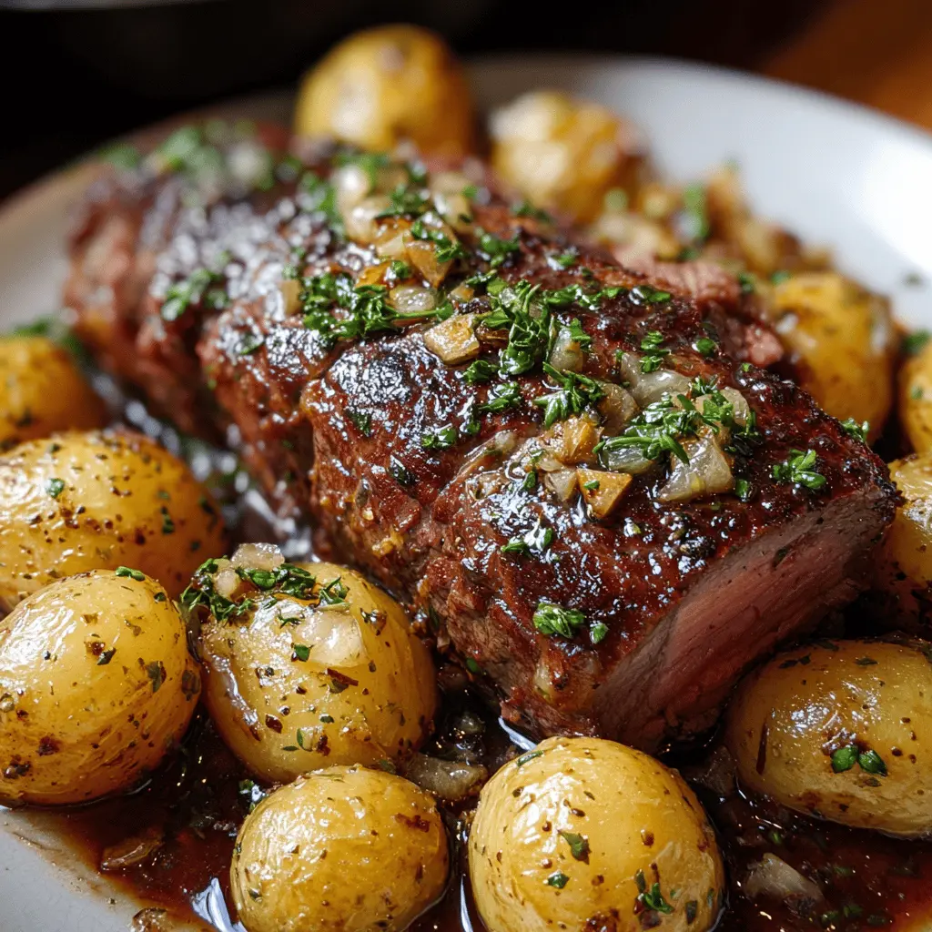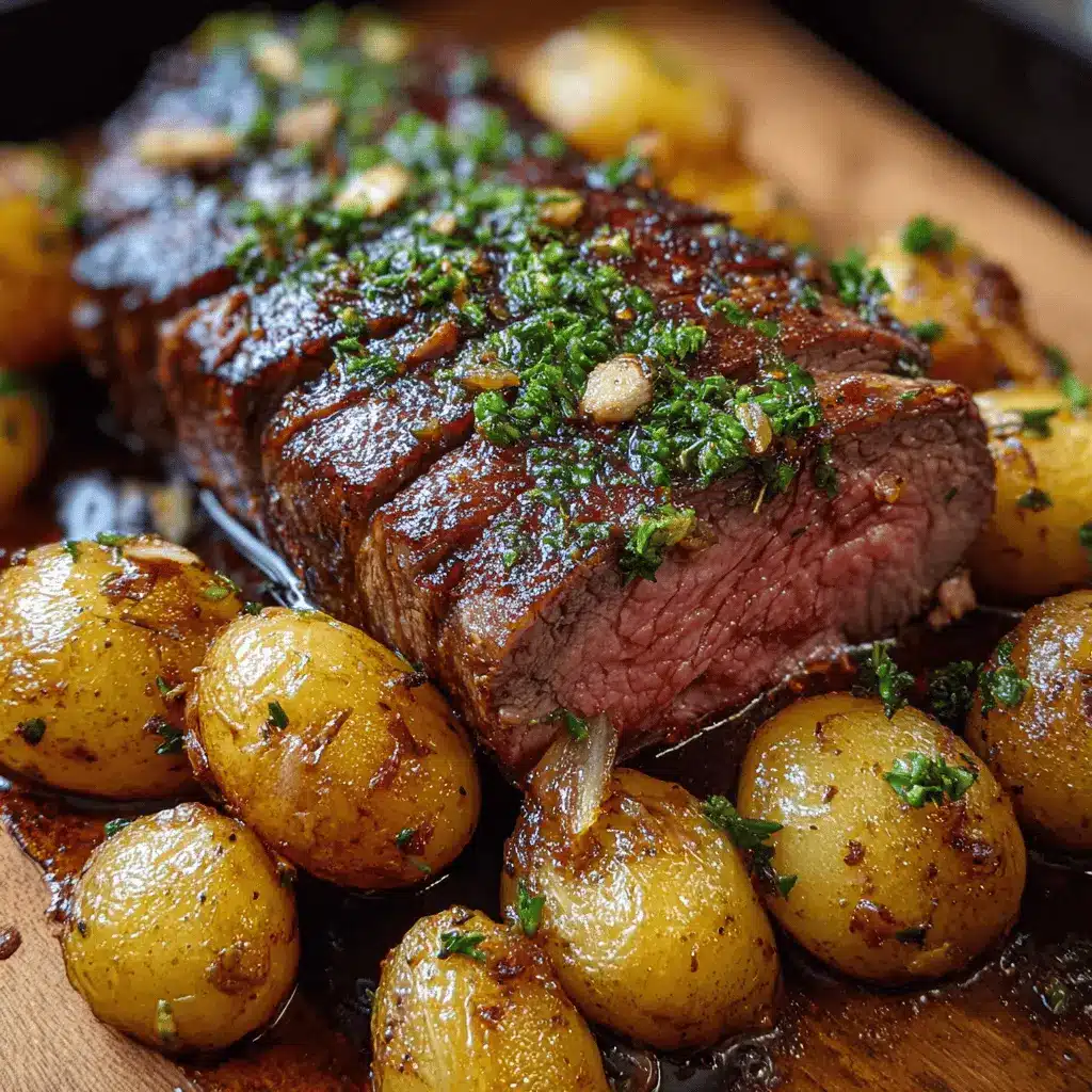 Delicious roasted beef sirloin paired with flavorful garlic potatoes, perfect for any home chef looking to impress.