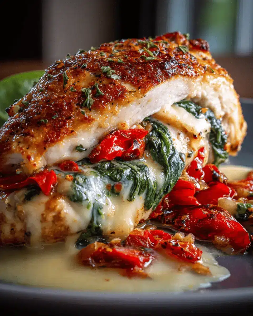 Roasted Red Pepper, Spinach, and Mozzarella Stuffed Chicken: Easy and Irresistibly Delicious