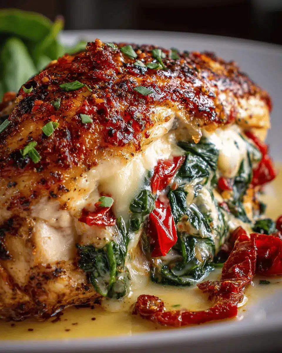 This filling not only elevates the chicken but also feels like a cozy hug on a plate. It’s perfect for a casual dinner or a small gathering with friends.