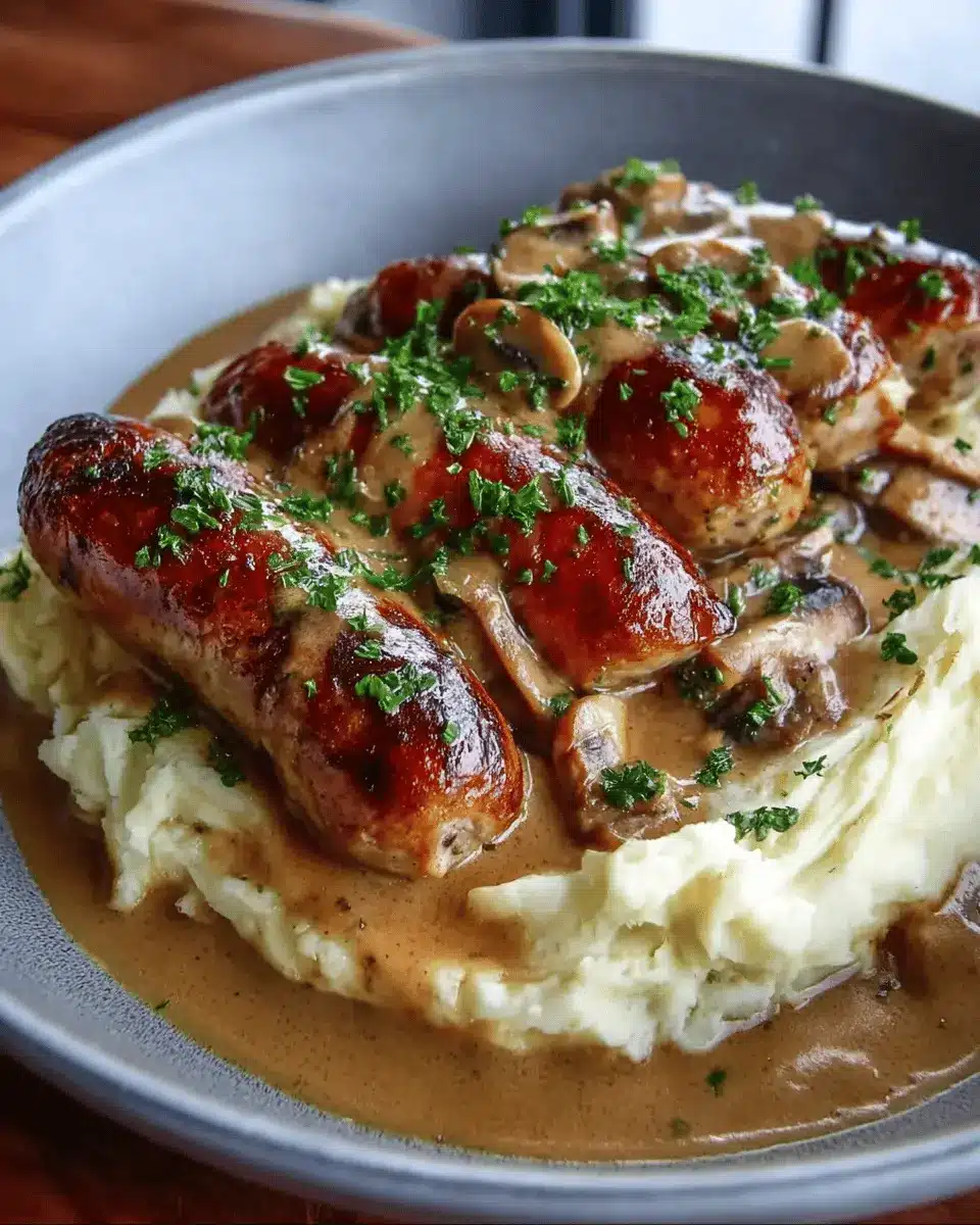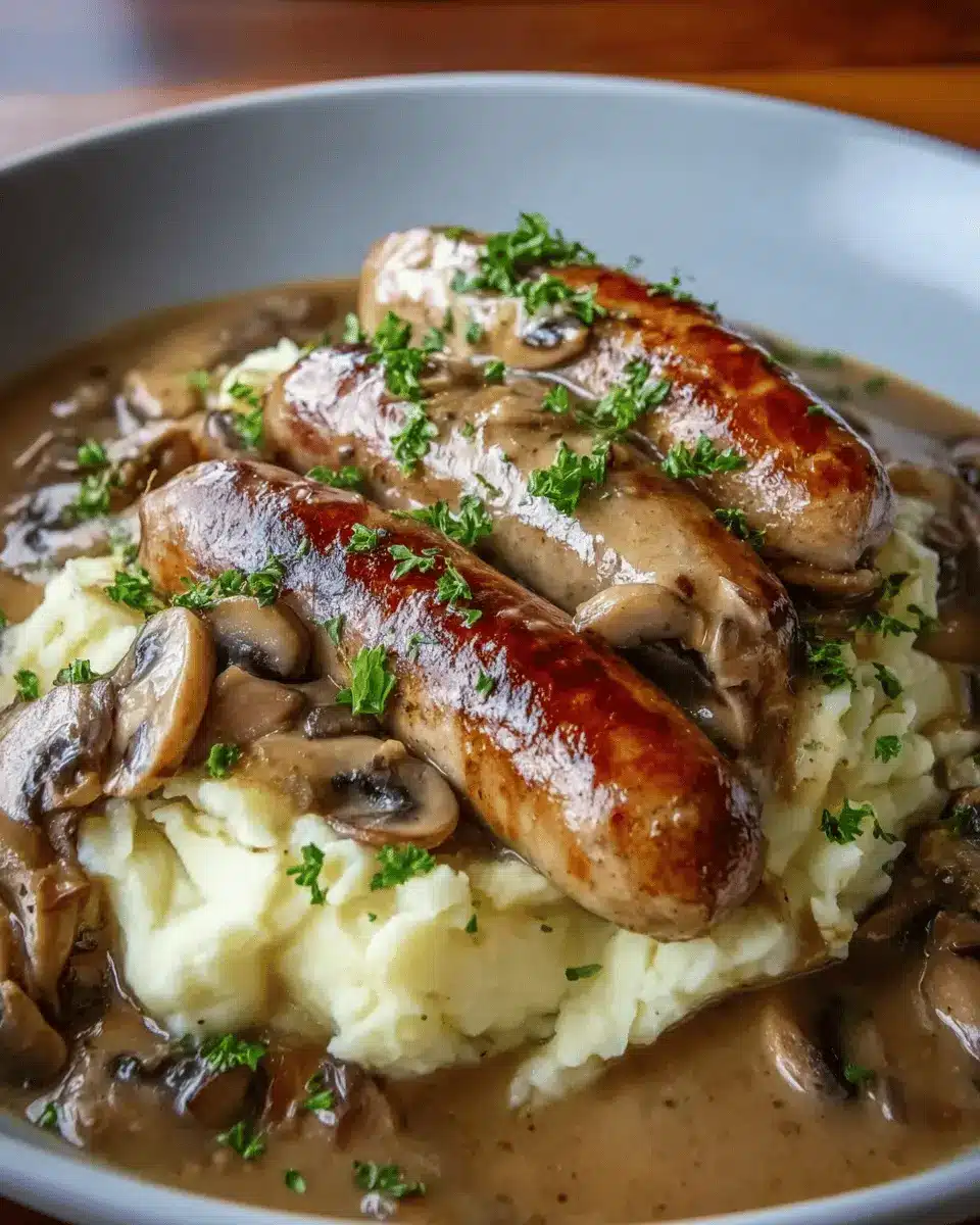 And there you have it! A warm, cozy plate of sausages with mushroom gravy that’s sure to satisfy any craving. Enjoy your culinary journey!