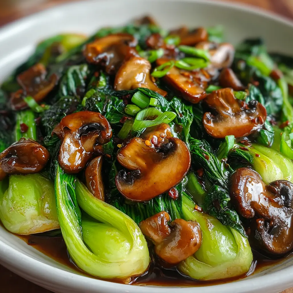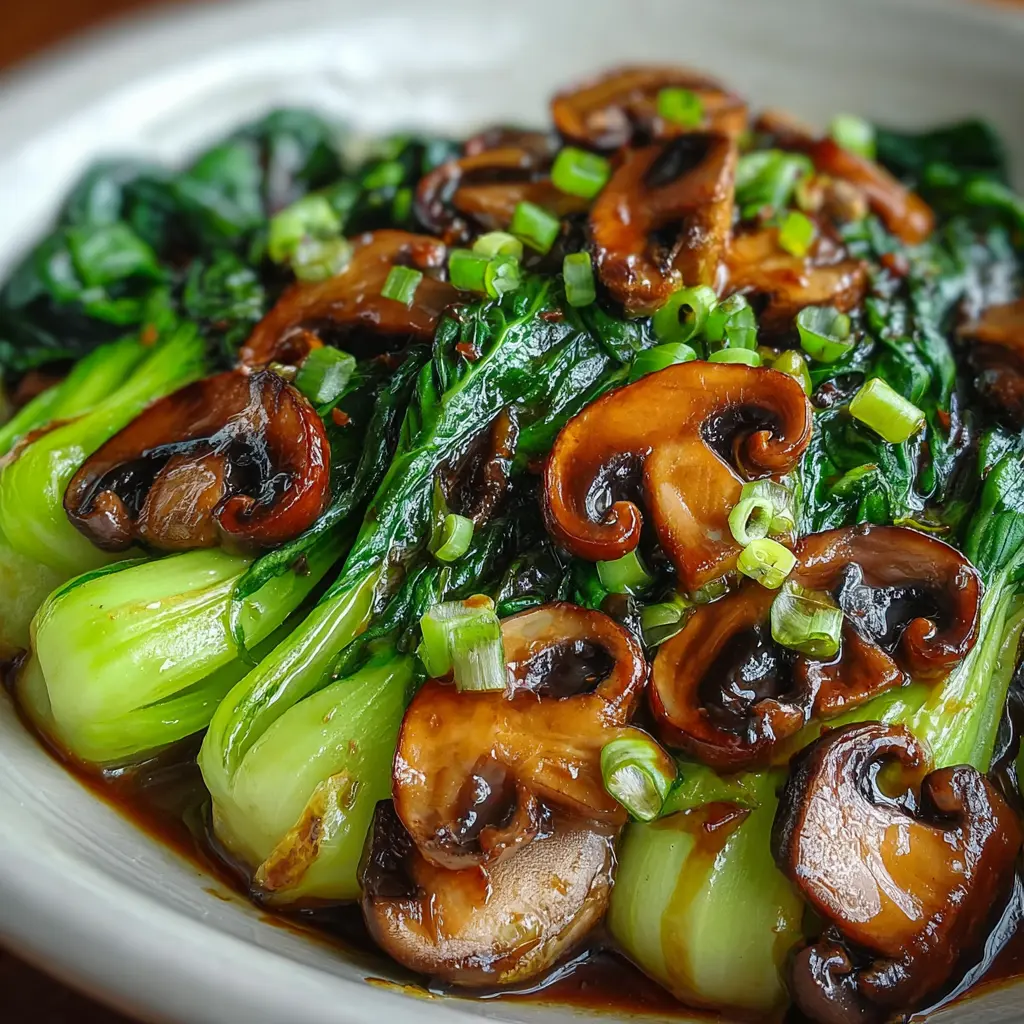 Enjoy the vibrant flavors of savory garlic bok choy paired with mushrooms in a light soy glaze. This easy recipe brings out the natural taste of the vegetables, perfect as a side dish or a vegetarian main.