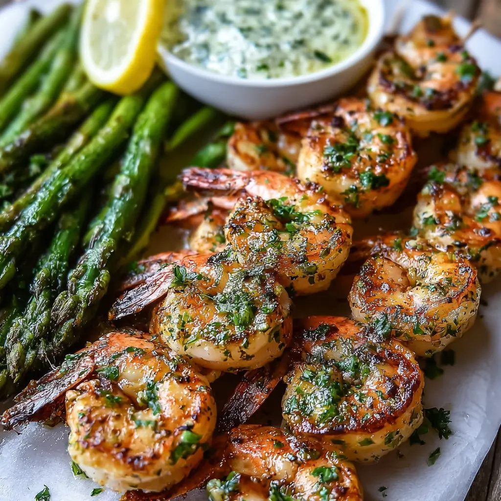 Enjoy a quick and delicious meal with these Sheet Pan Garlic Butter Shrimp Skewers, perfectly paired with fresh spring asparagus.