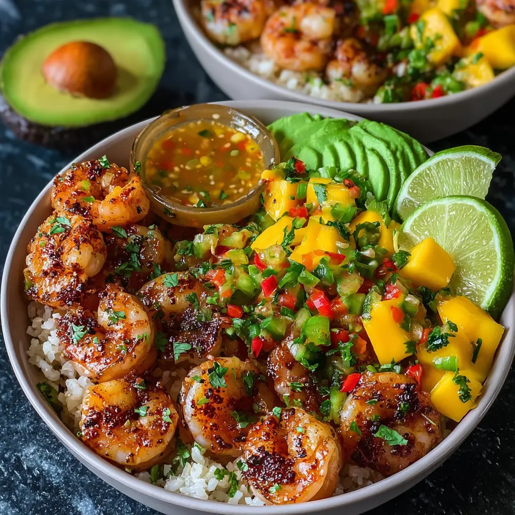 Delight in the vibrant flavors of our Shrimp and Avocado Bowls topped with zesty Mango Salsa and a spicy Lime-Chili Sauce. Perfect for a light and satisfying meal!