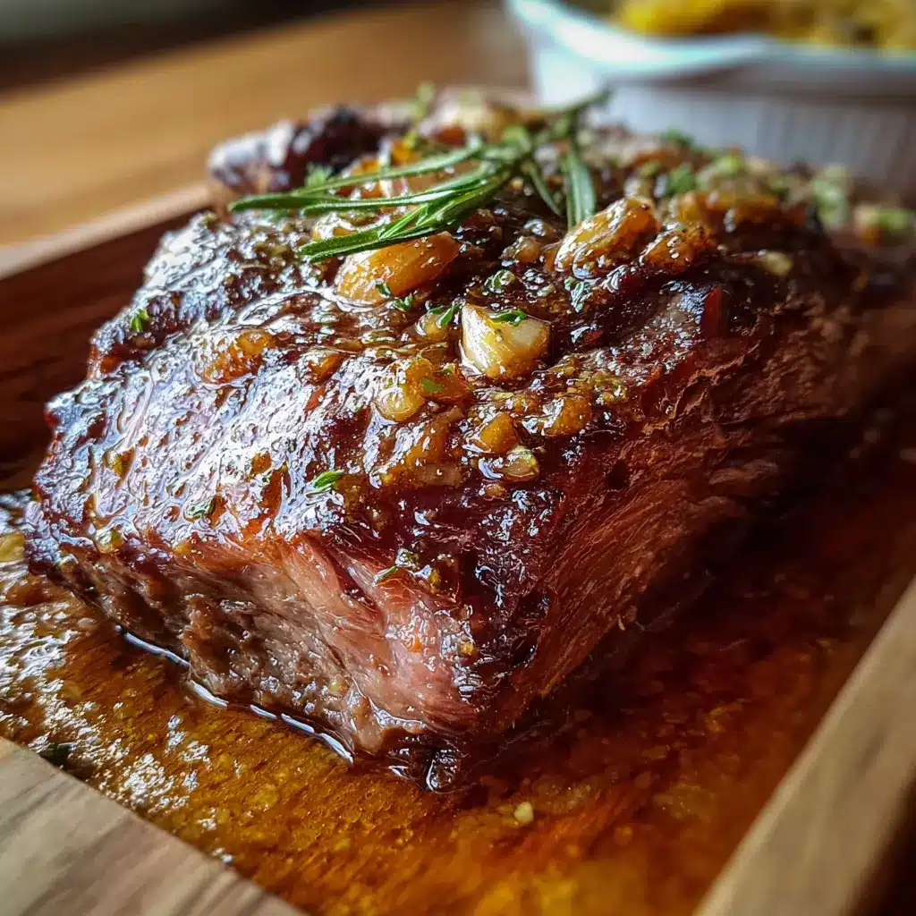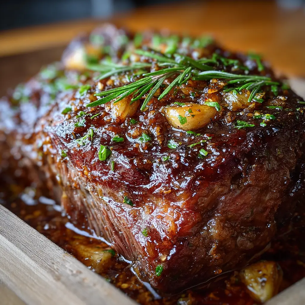 A mouthwatering dish featuring tender beef shoulder infused with garlic and sweet honey, perfect for a comforting meal.