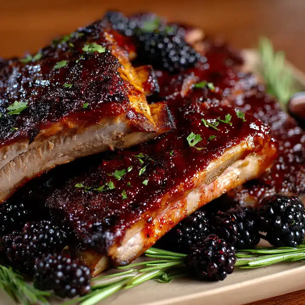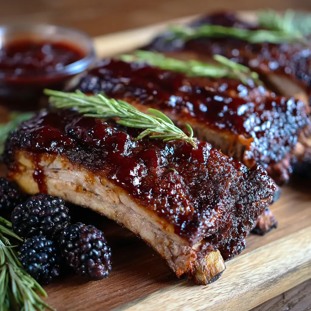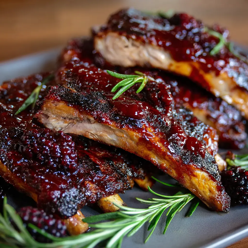 A delightful recipe for slow-roasted ribs smothered in a rich blackberry BBQ sauce.